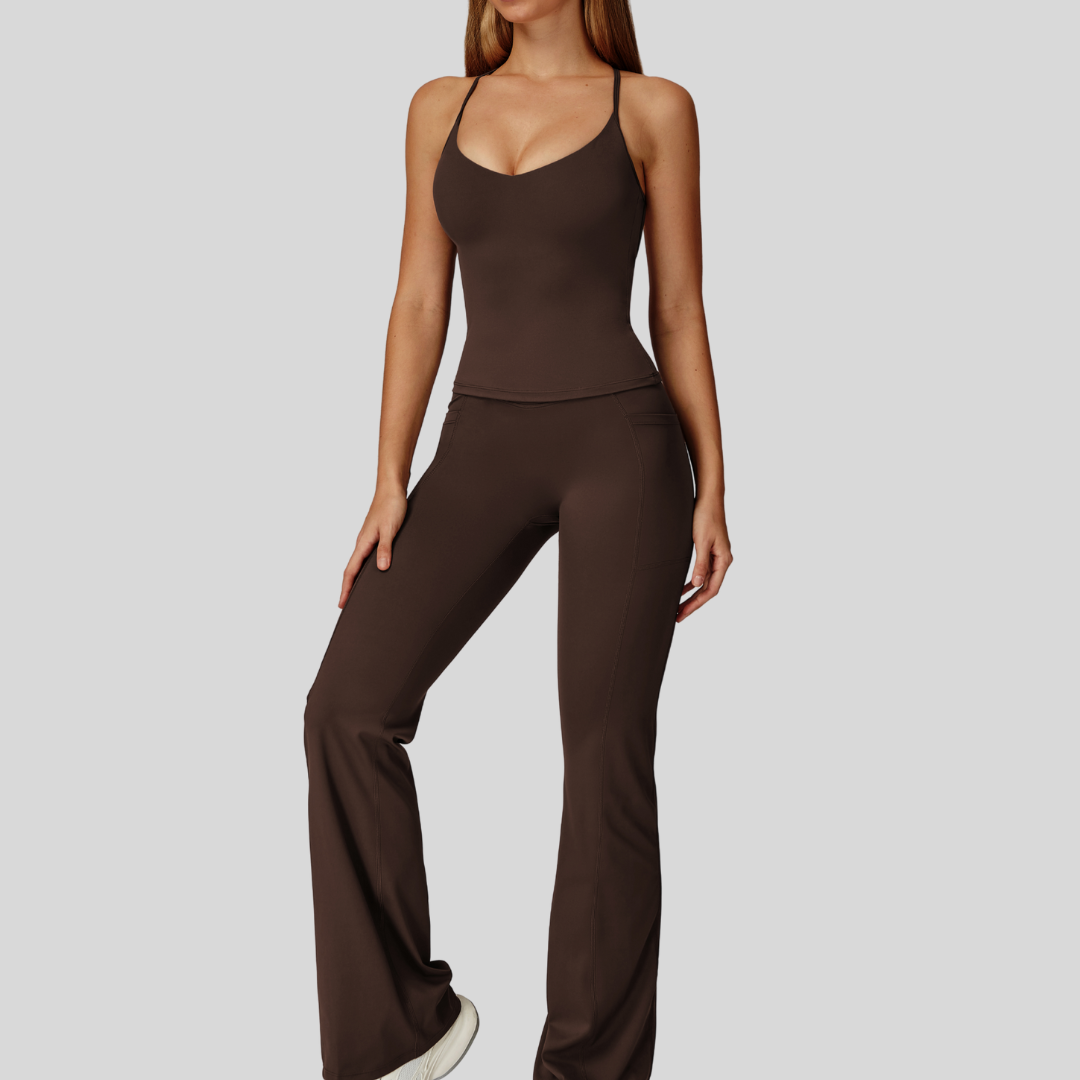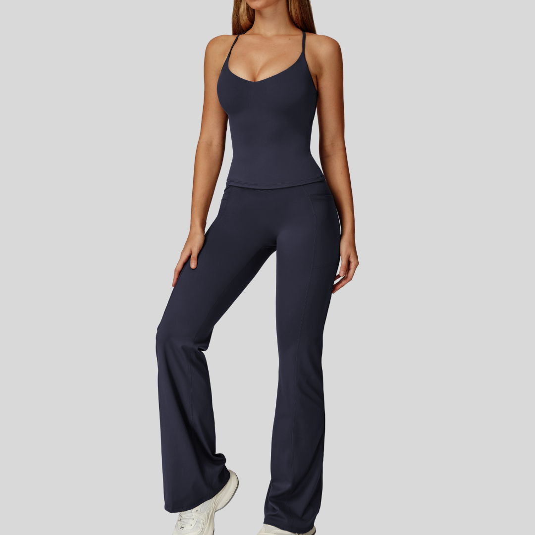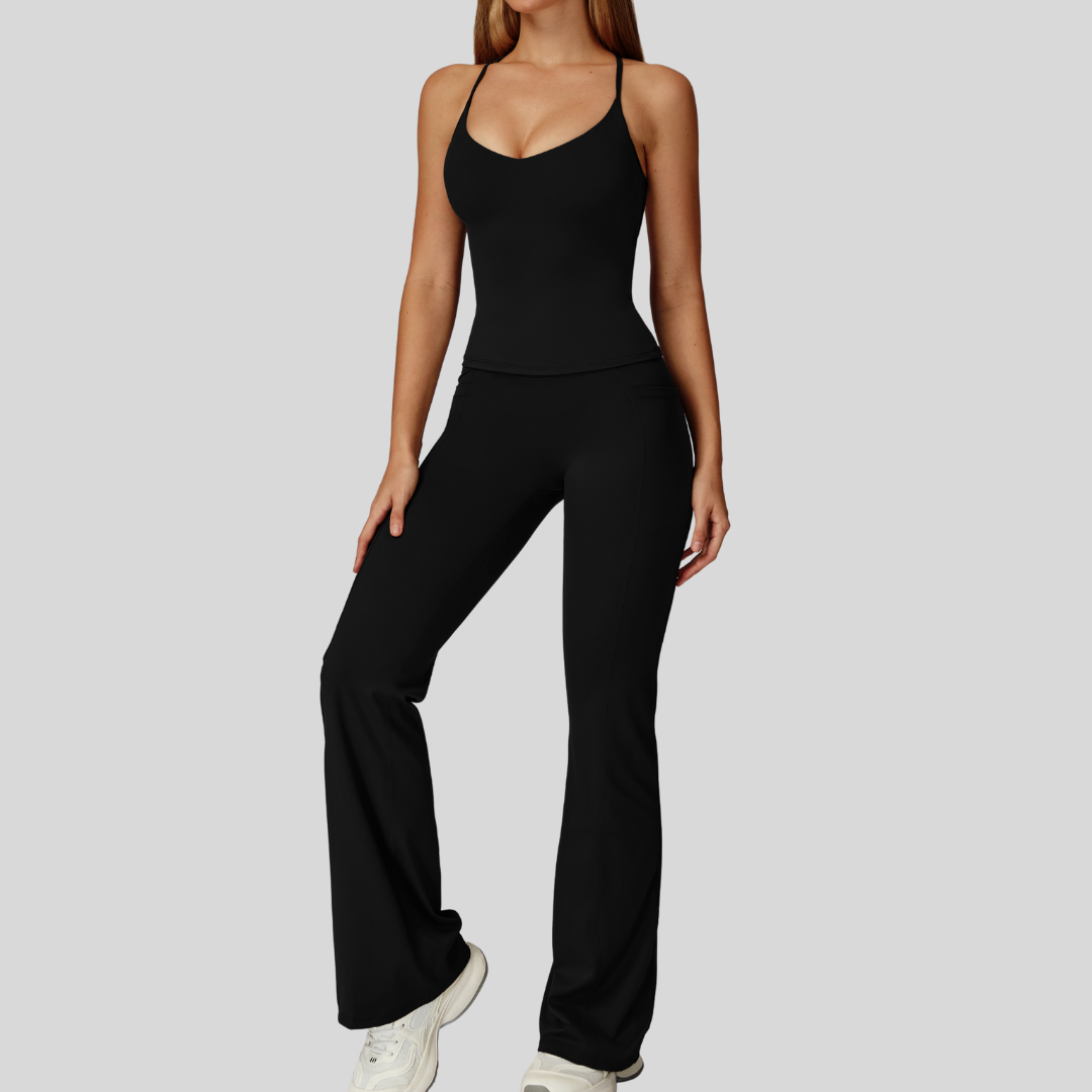 ✔ High-Waist Flare Pants – Smooth, flexible, and elongating.