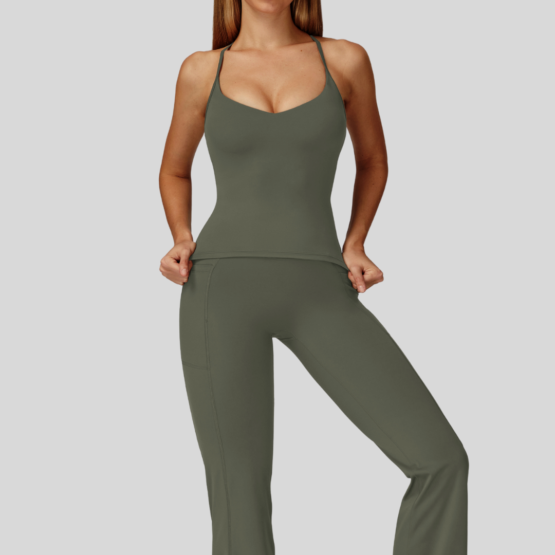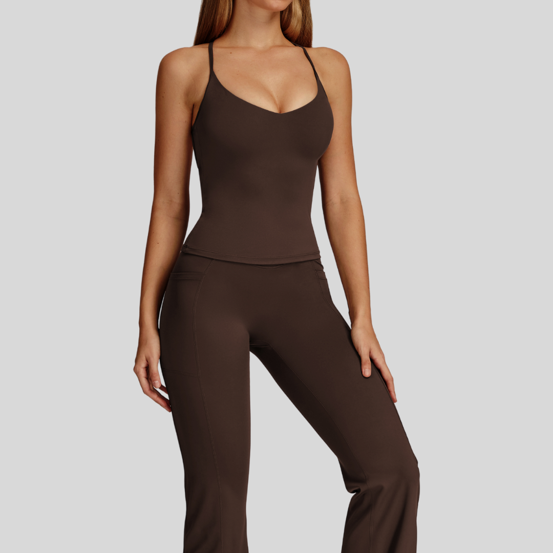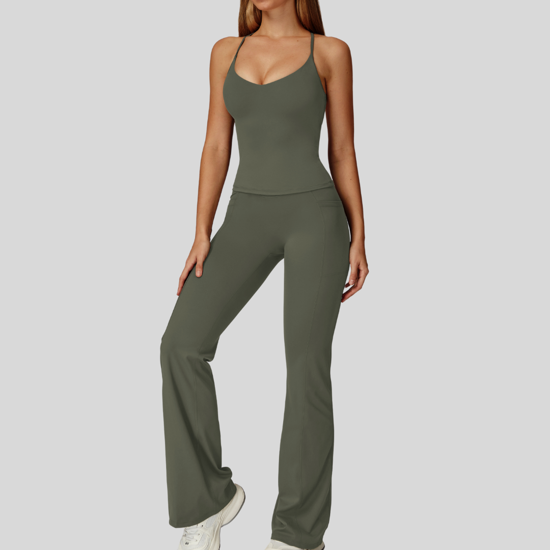 ✔ High-Waist Flare Pants – Smooth, flexible, and elongating.