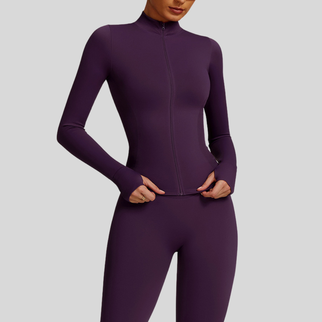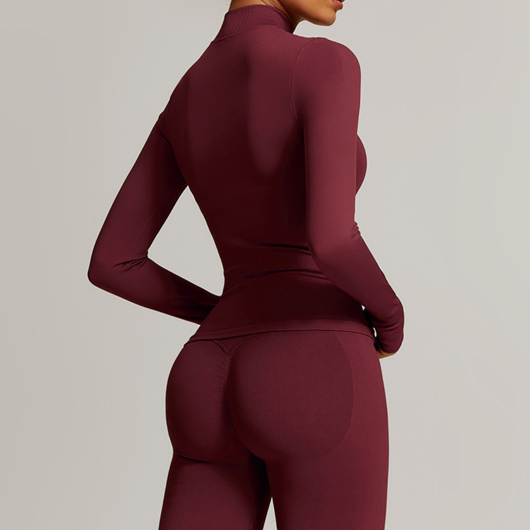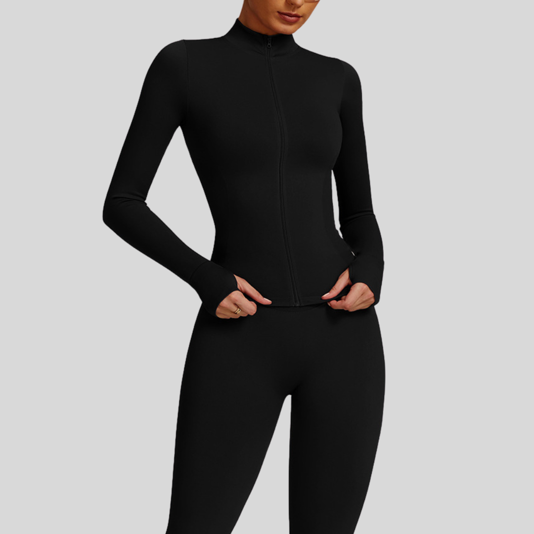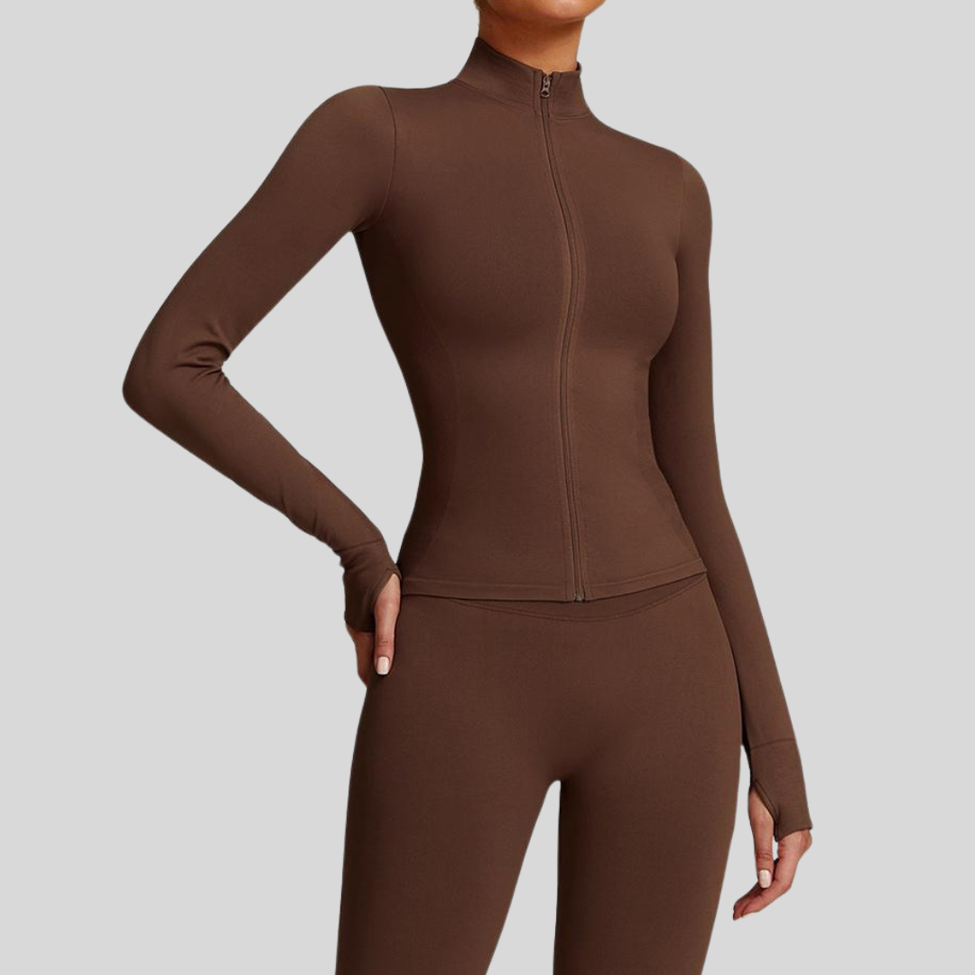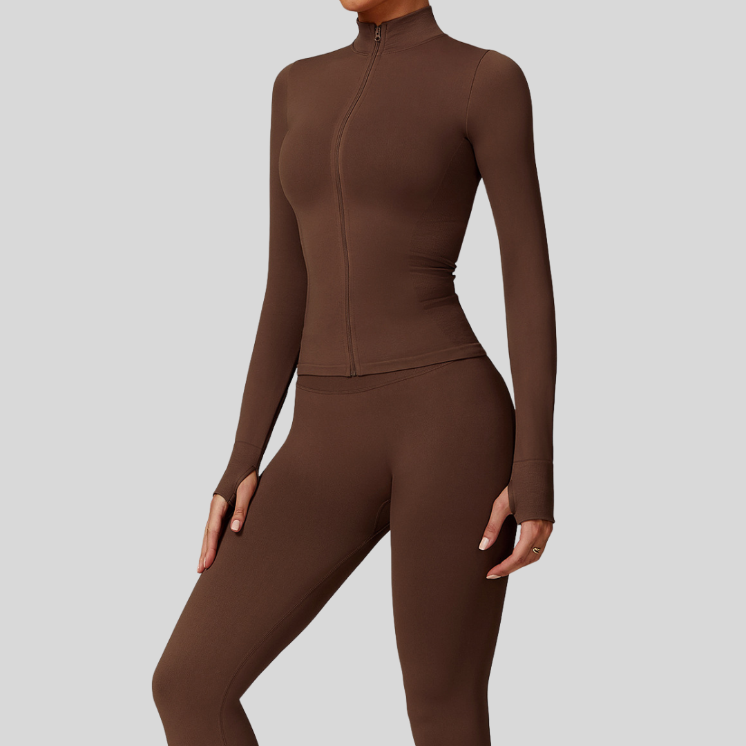The Cloe set is your go-to for polished comfort. With its fitted jacket and sculpting leggings, it’s all about minimal design with maximum impact. The subtle ruched back seam adds a touch of shape and lift that enhances your natural curves.