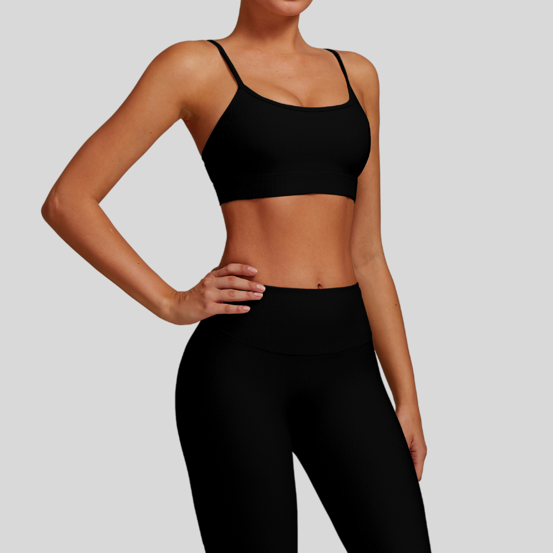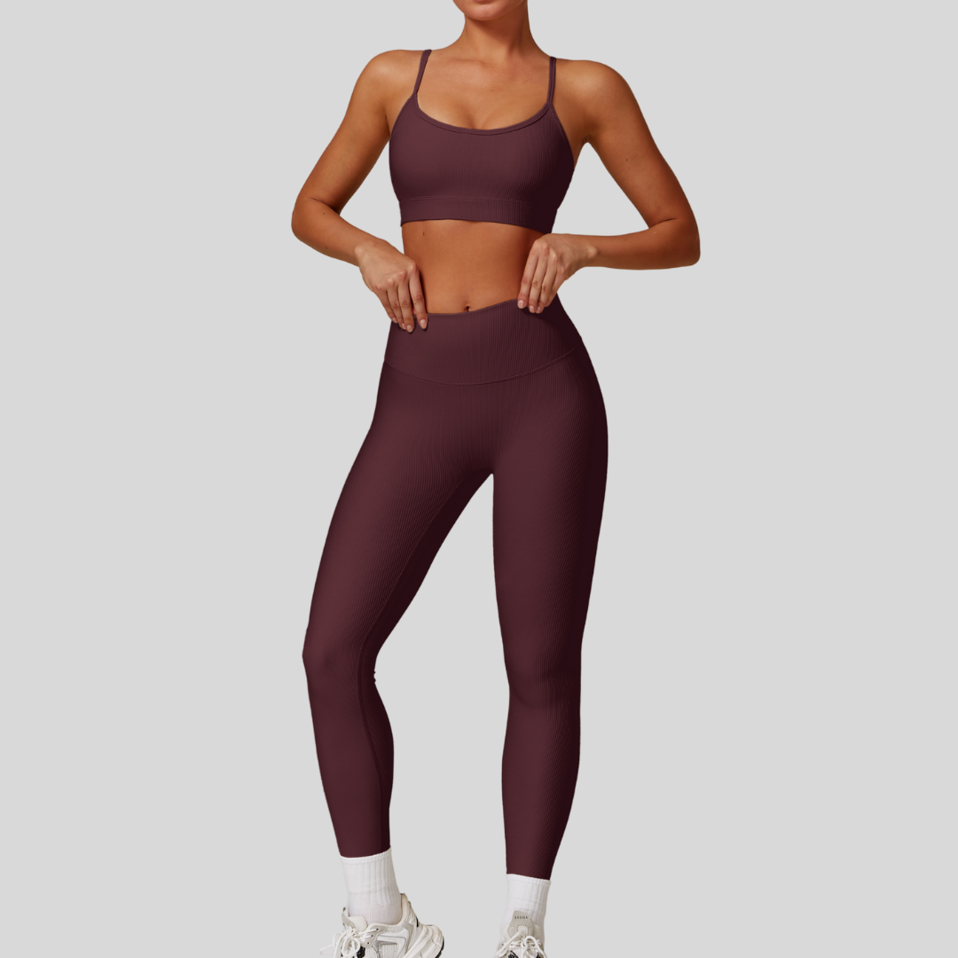 Meet Valeria—your new go-to for laid-back days full of energy and style. Featuring a sleek ribbed fabric top and leggings, this set offers all-day comfort and a figure-flattering fit.