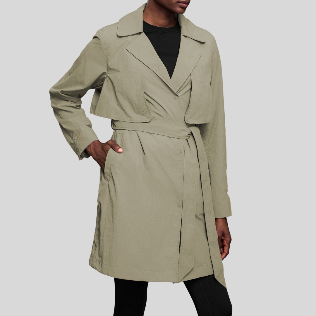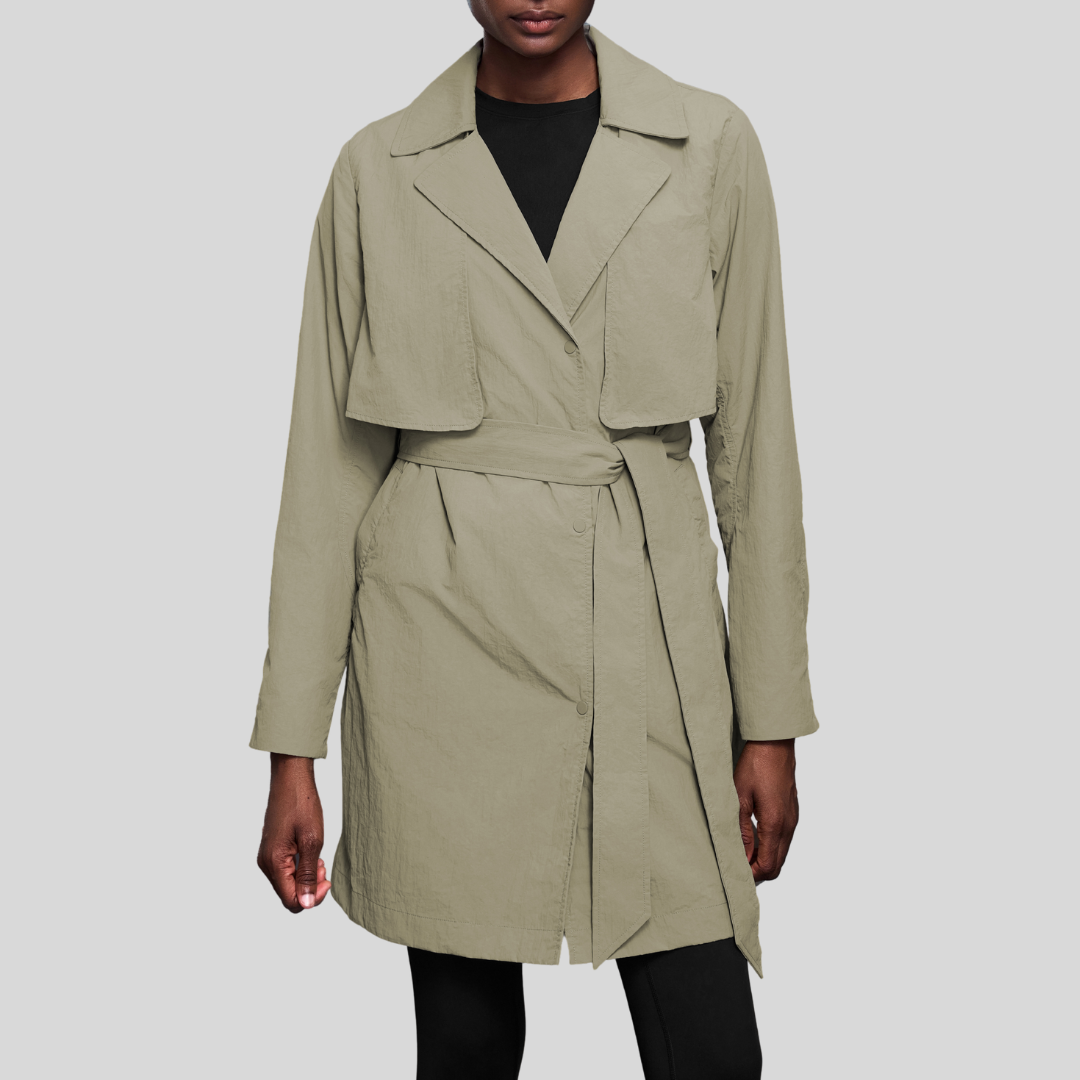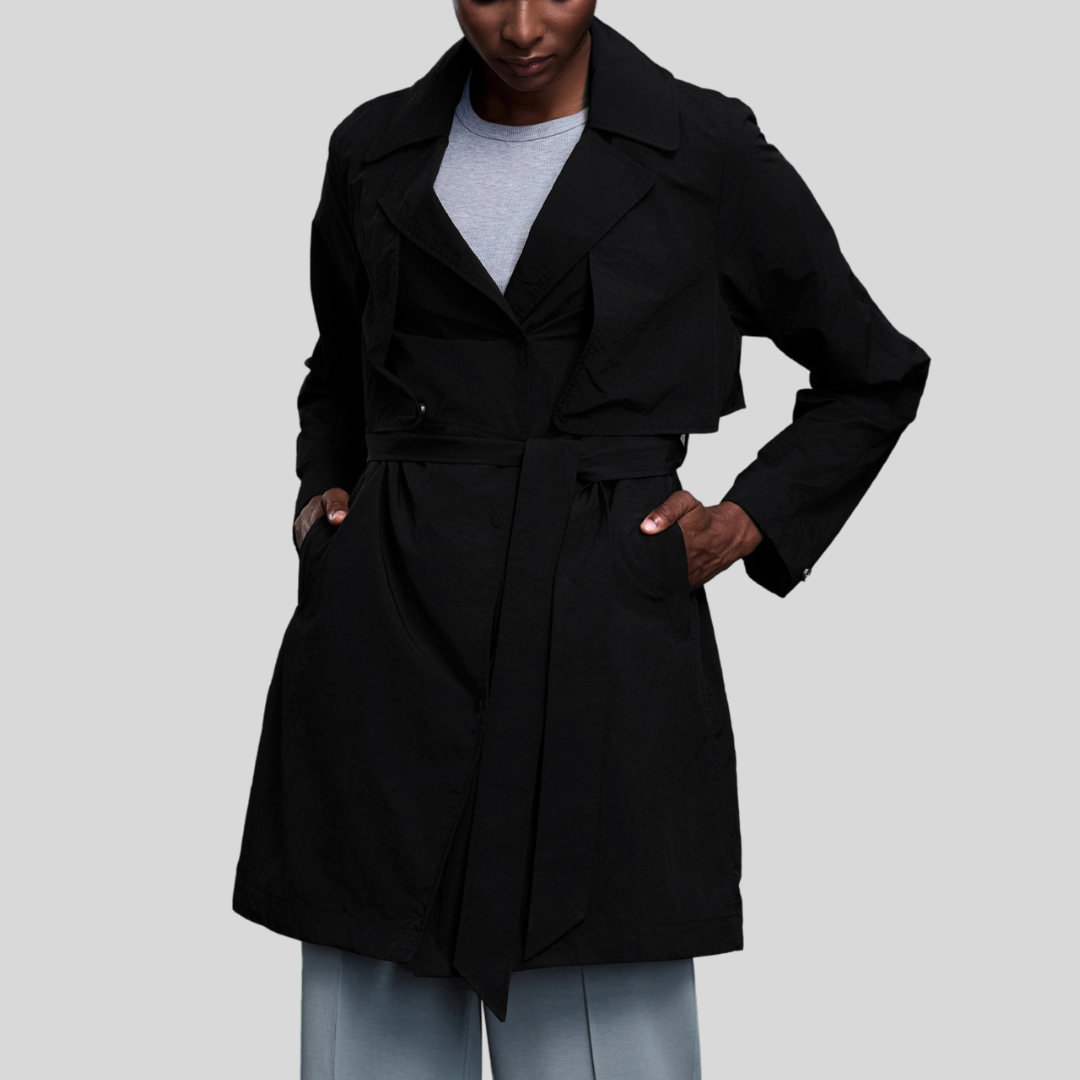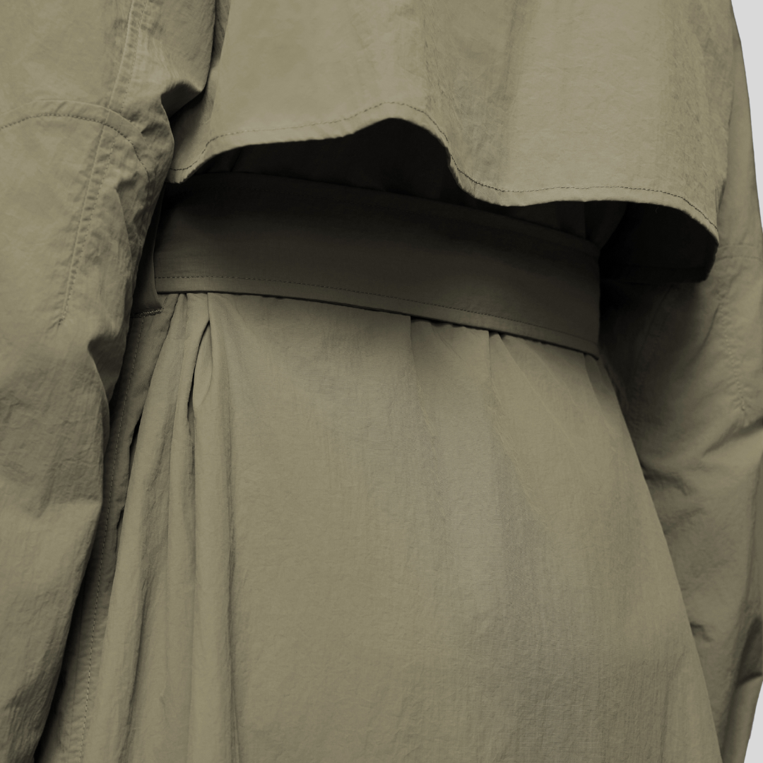 Layered Trench-Inspired Design – Cropped upper panel adds depth and a modern silhouette.