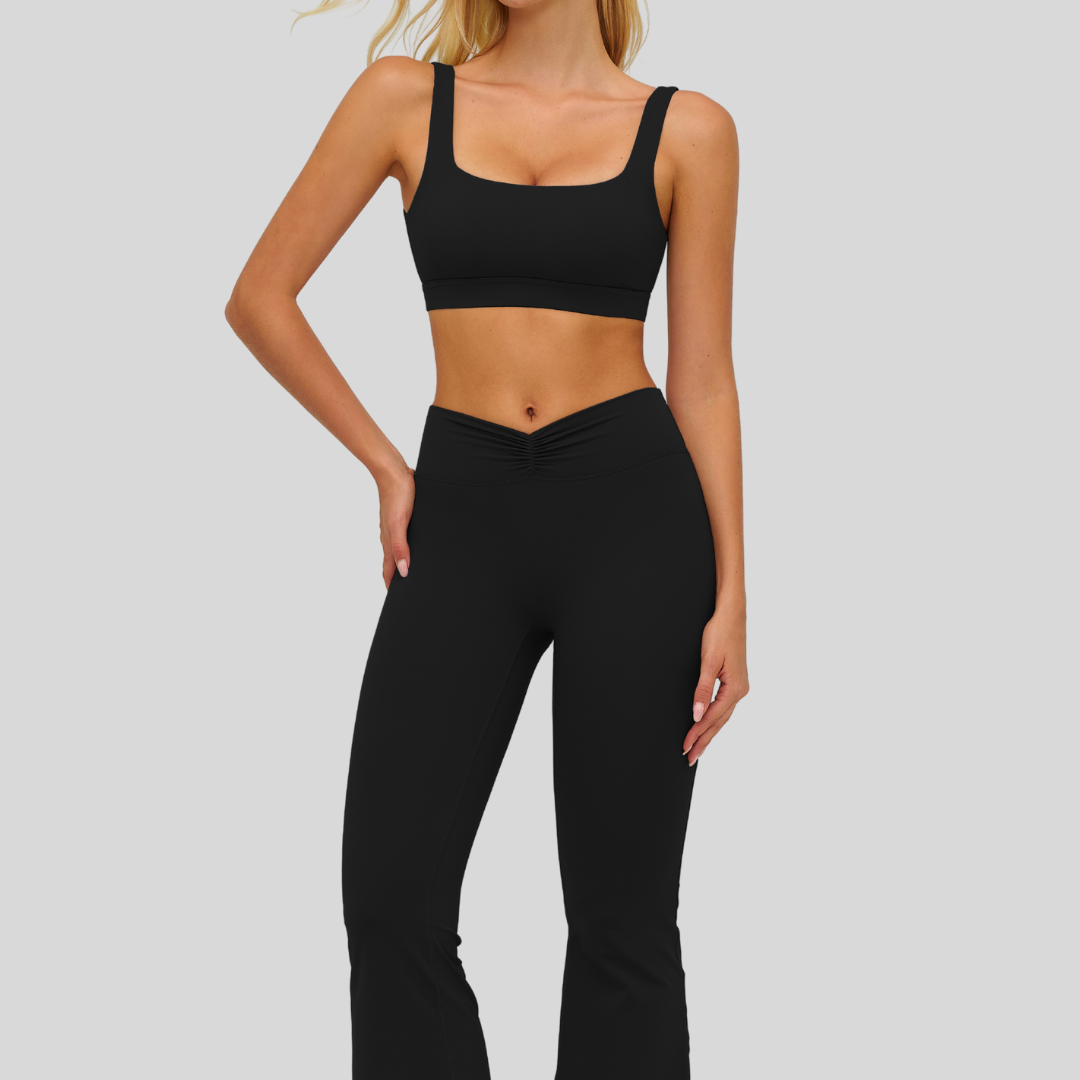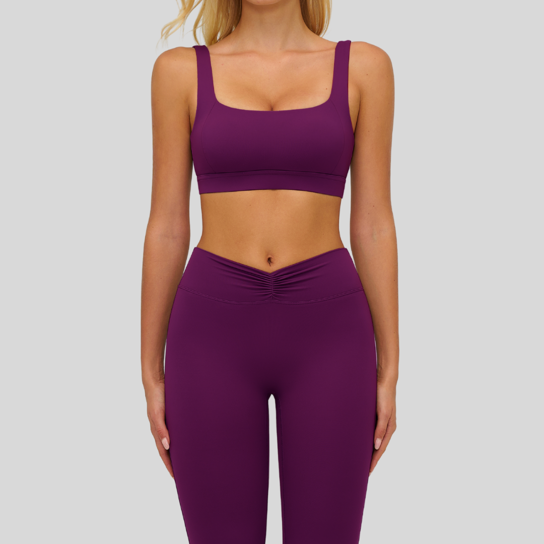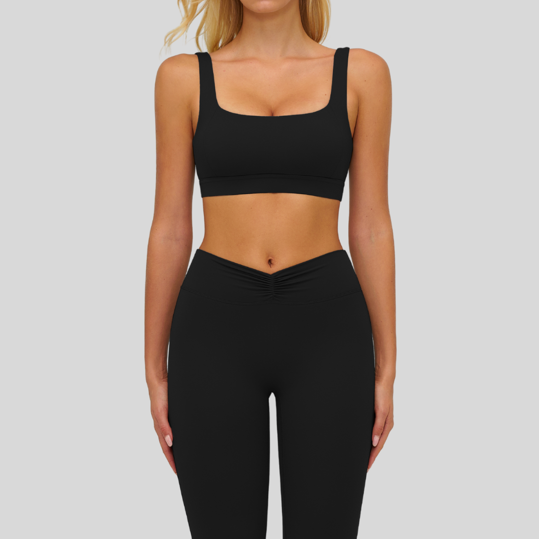 ✔ Sculpting Sports Bra – Clean neckline with comfortable, secure support.