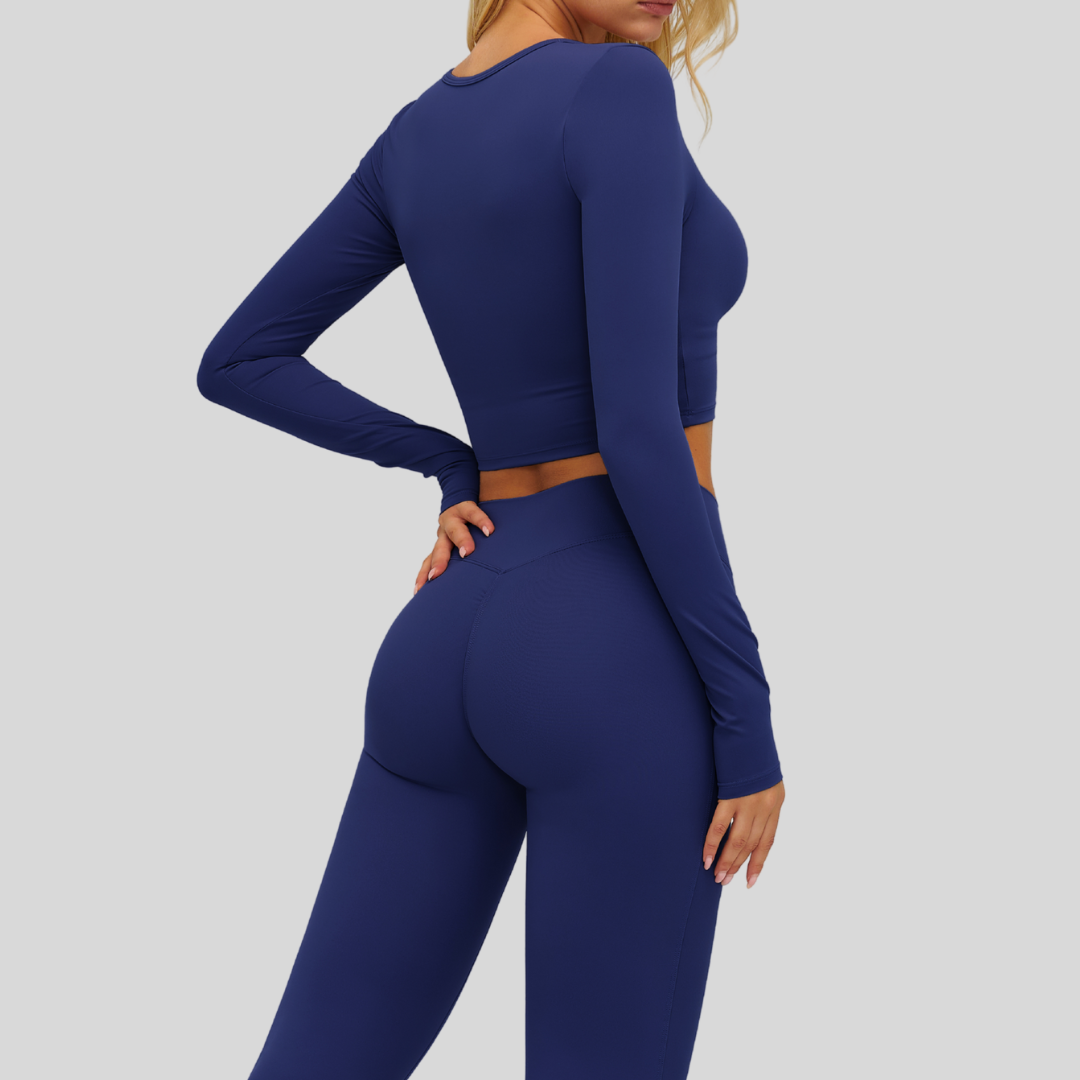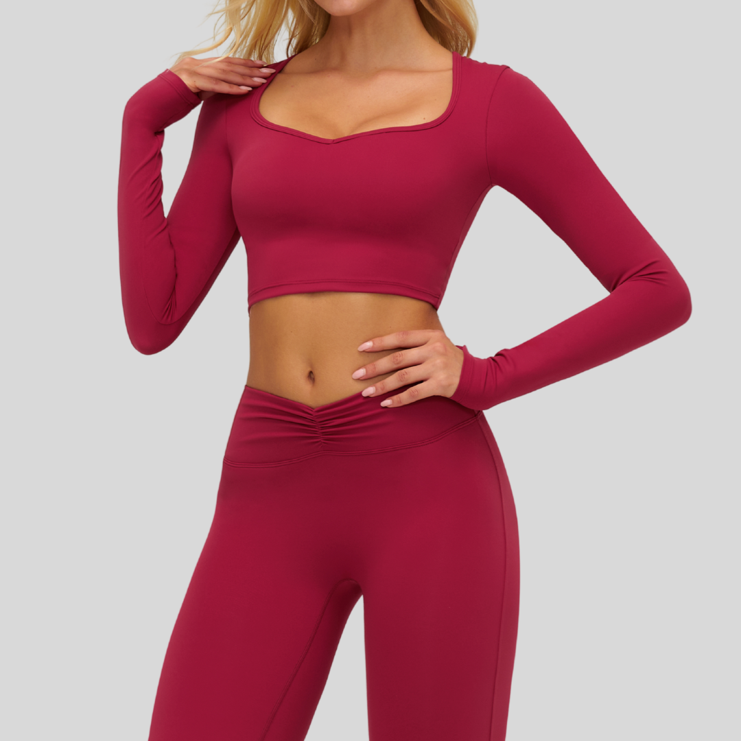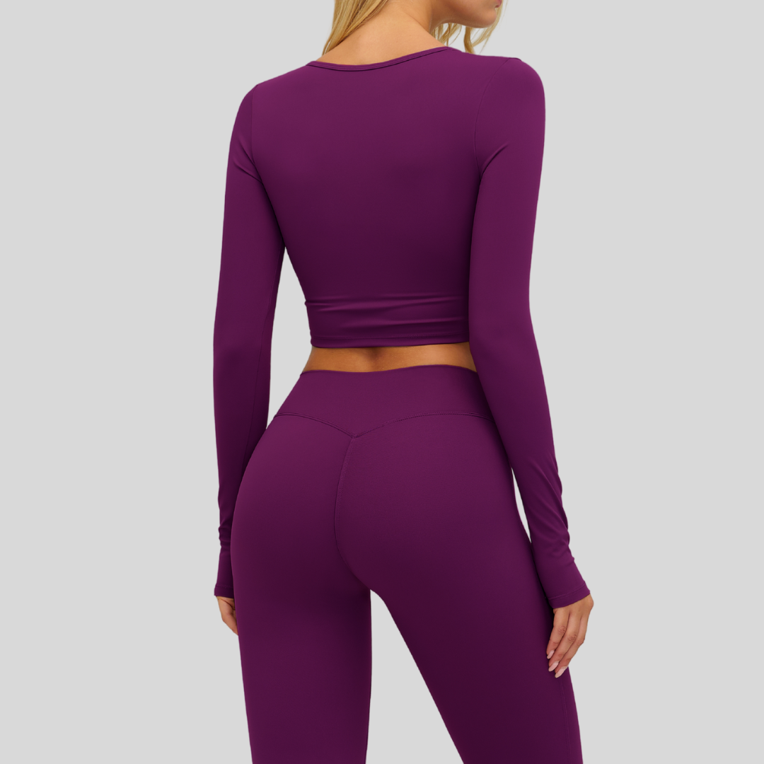 ✔ Sculpted Long Sleeve Top – Smooth coverage with a flattering cropped length.