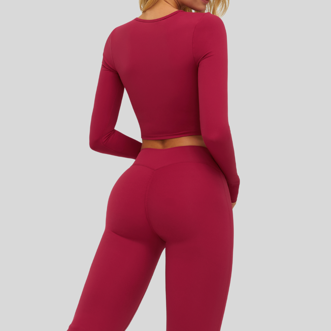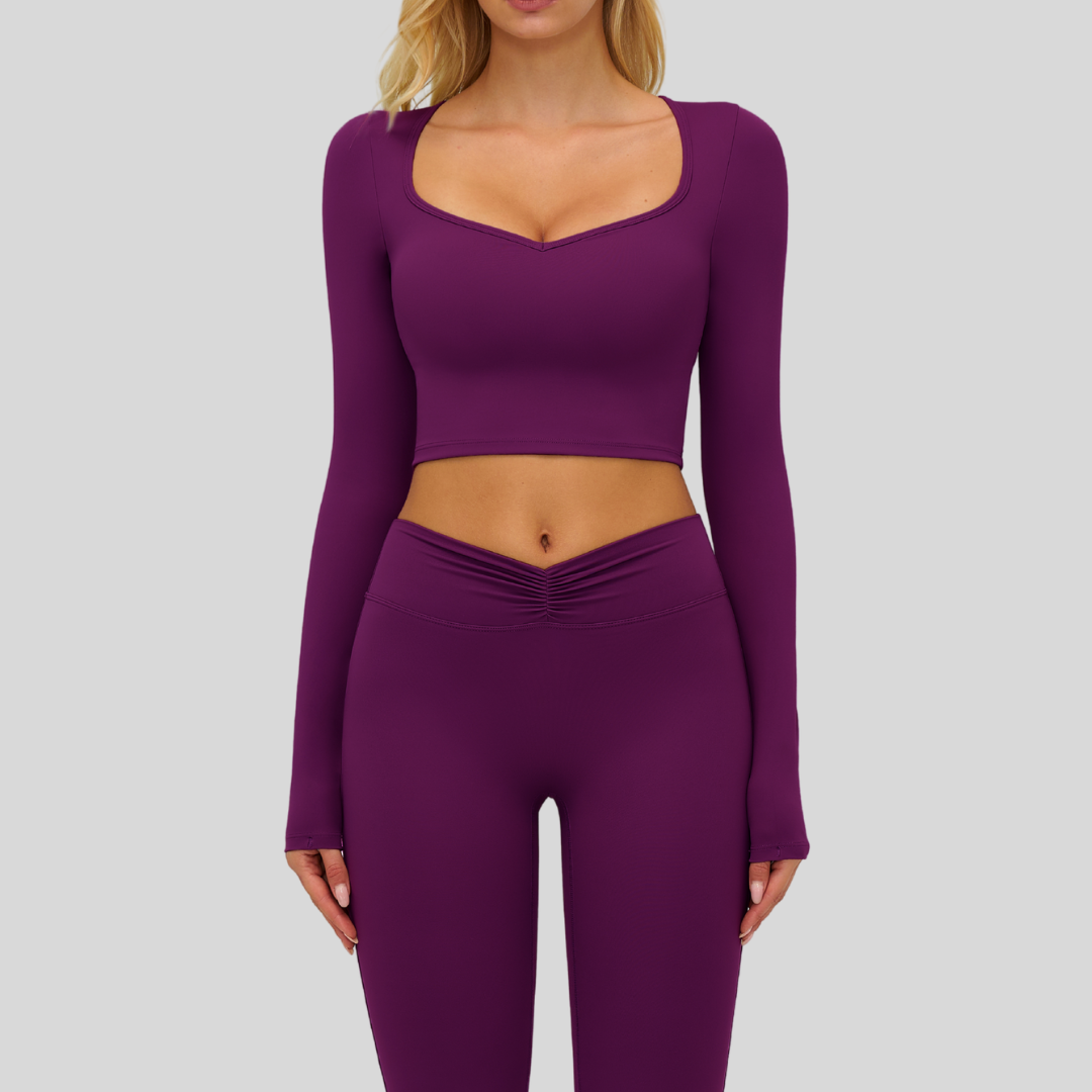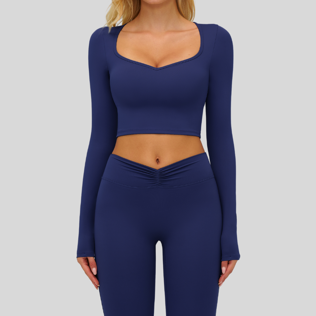 ✔ Sculpted Long Sleeve Top – Smooth coverage with a flattering cropped length.