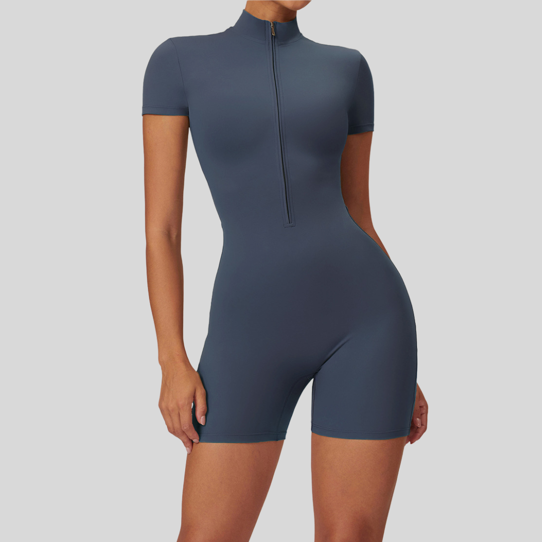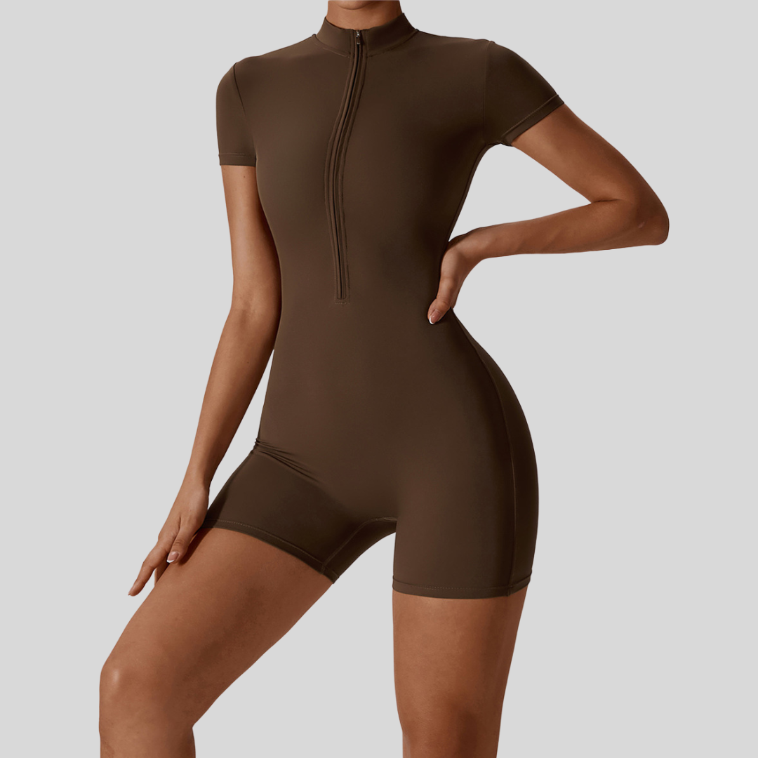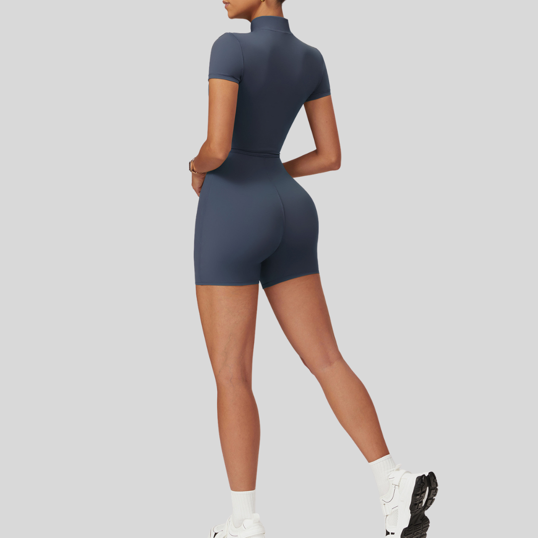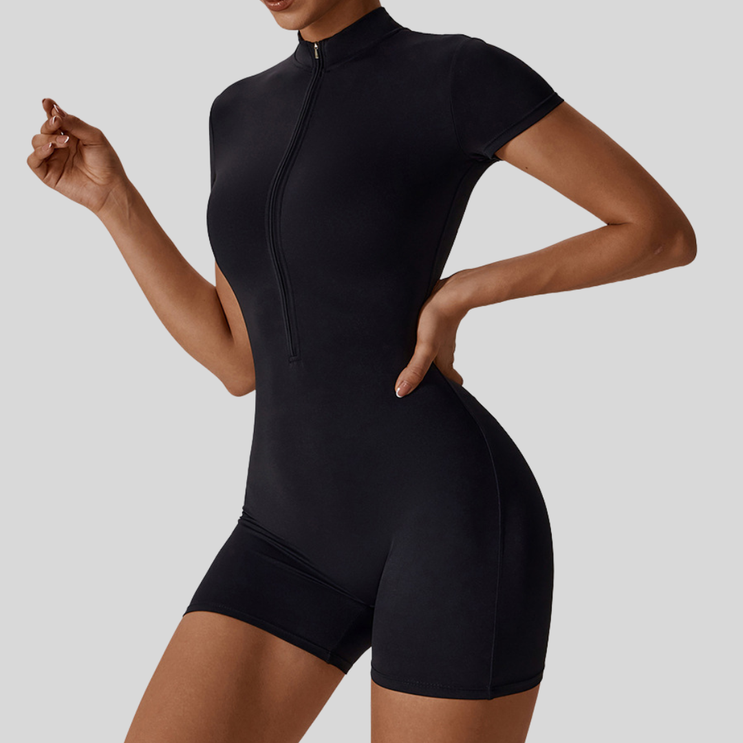 The Scarlet jumpsuit is designed to contour your body with a sleek, minimal silhouette. Featuring a front zip detail and a flattering short cut, it blends confidence and comfort effortlessly.