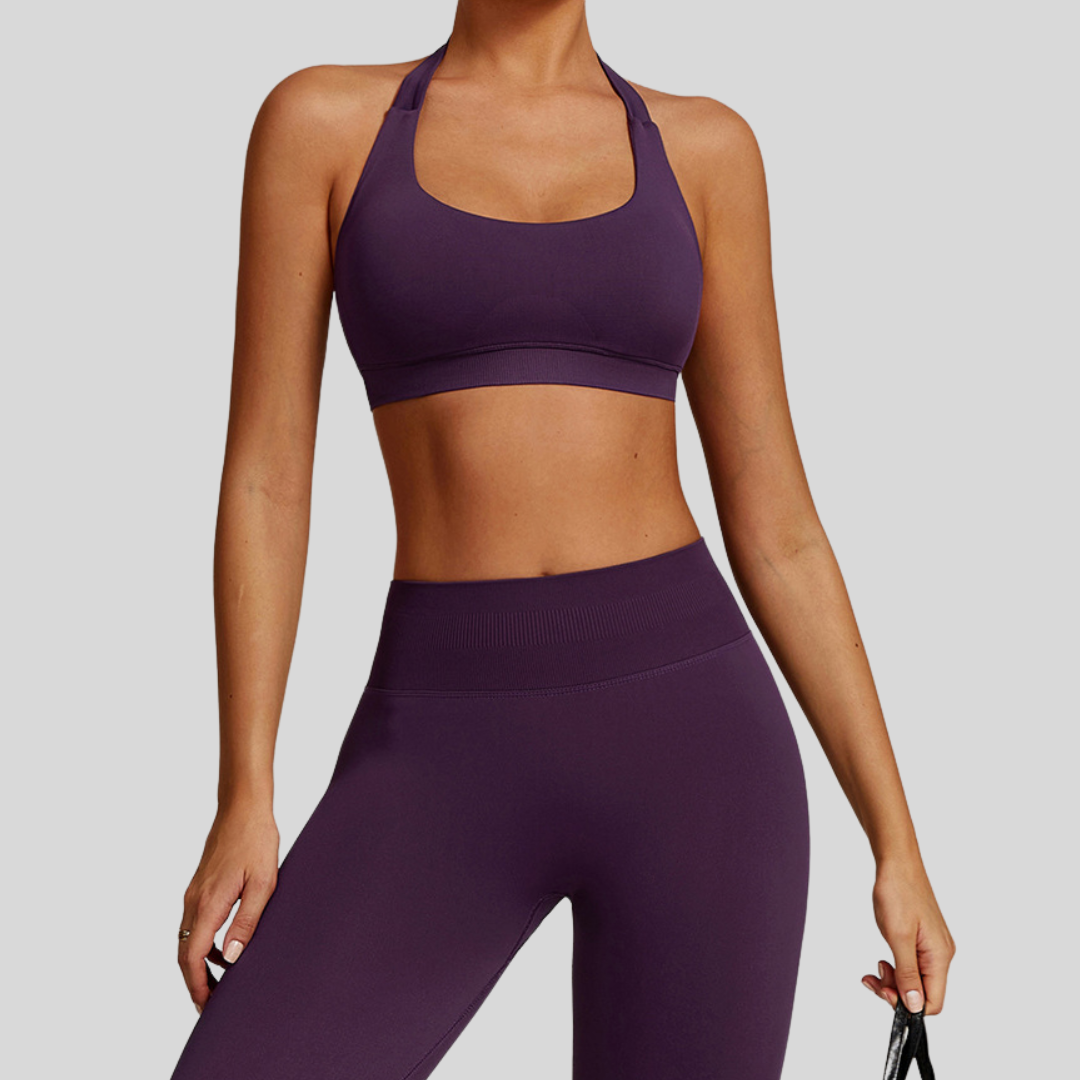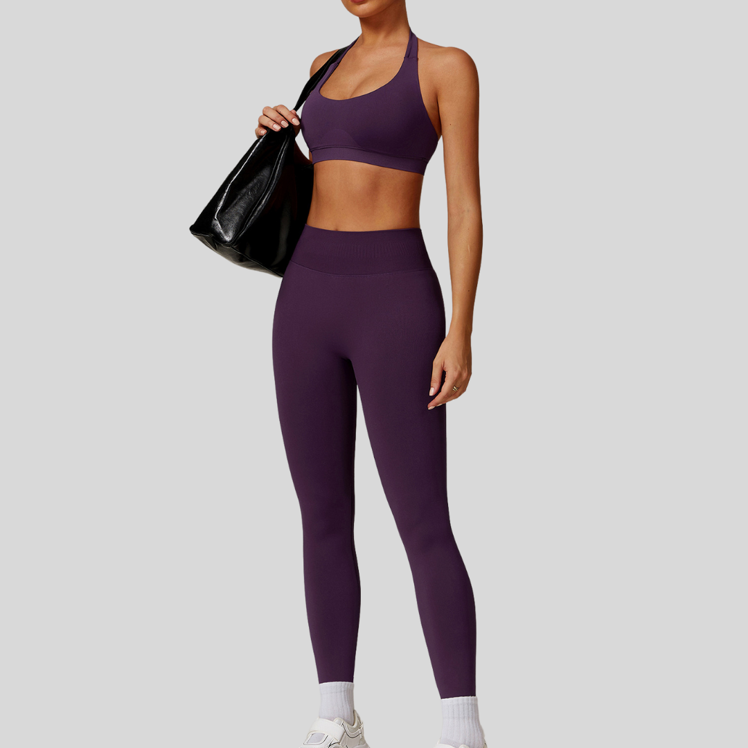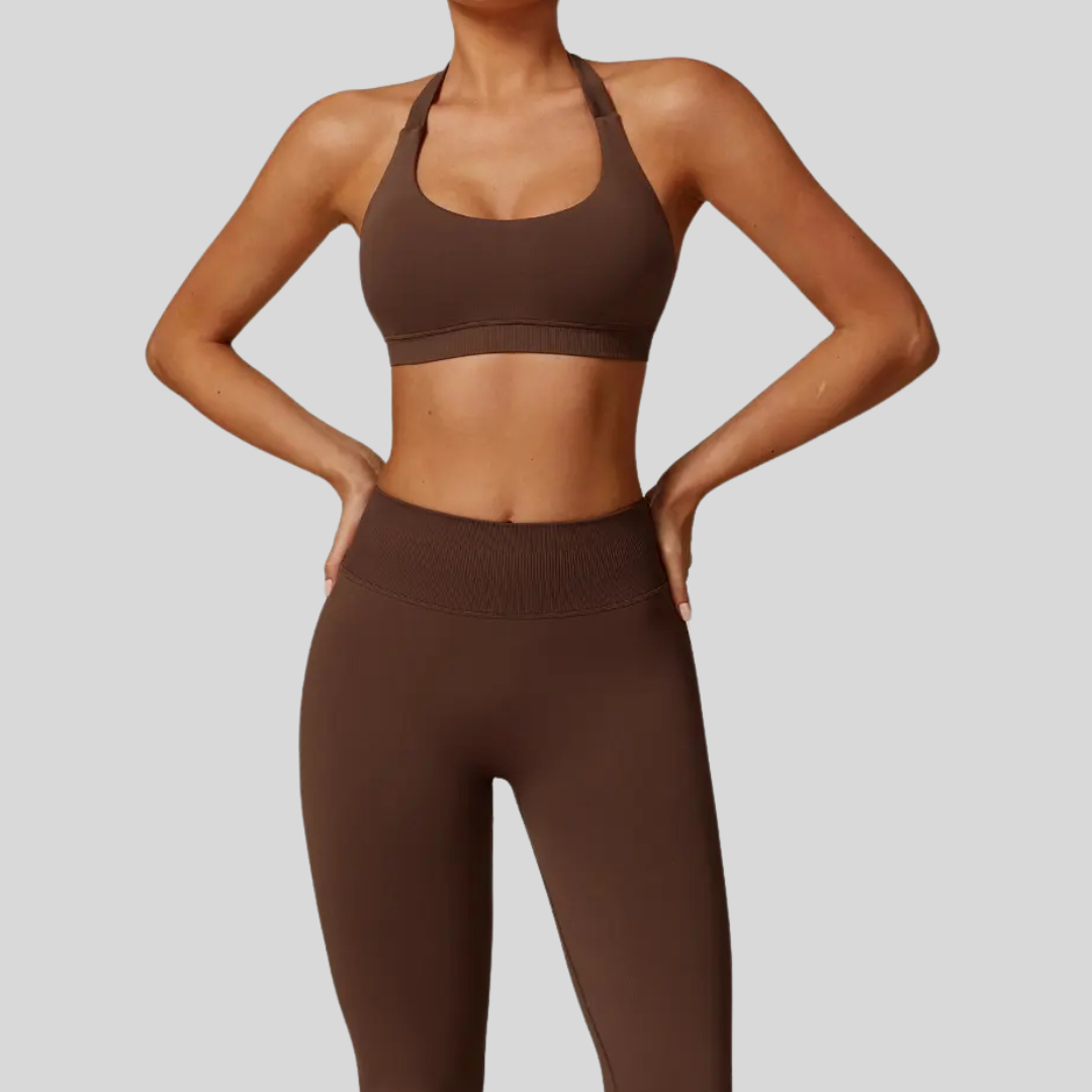 Designed for the woman who does it all, Faye is your go-to set for days packed with movement, style, and confidence. From morning workouts to coffee dates, this sleek halter-style top and sculpting leggings combo has you covered.