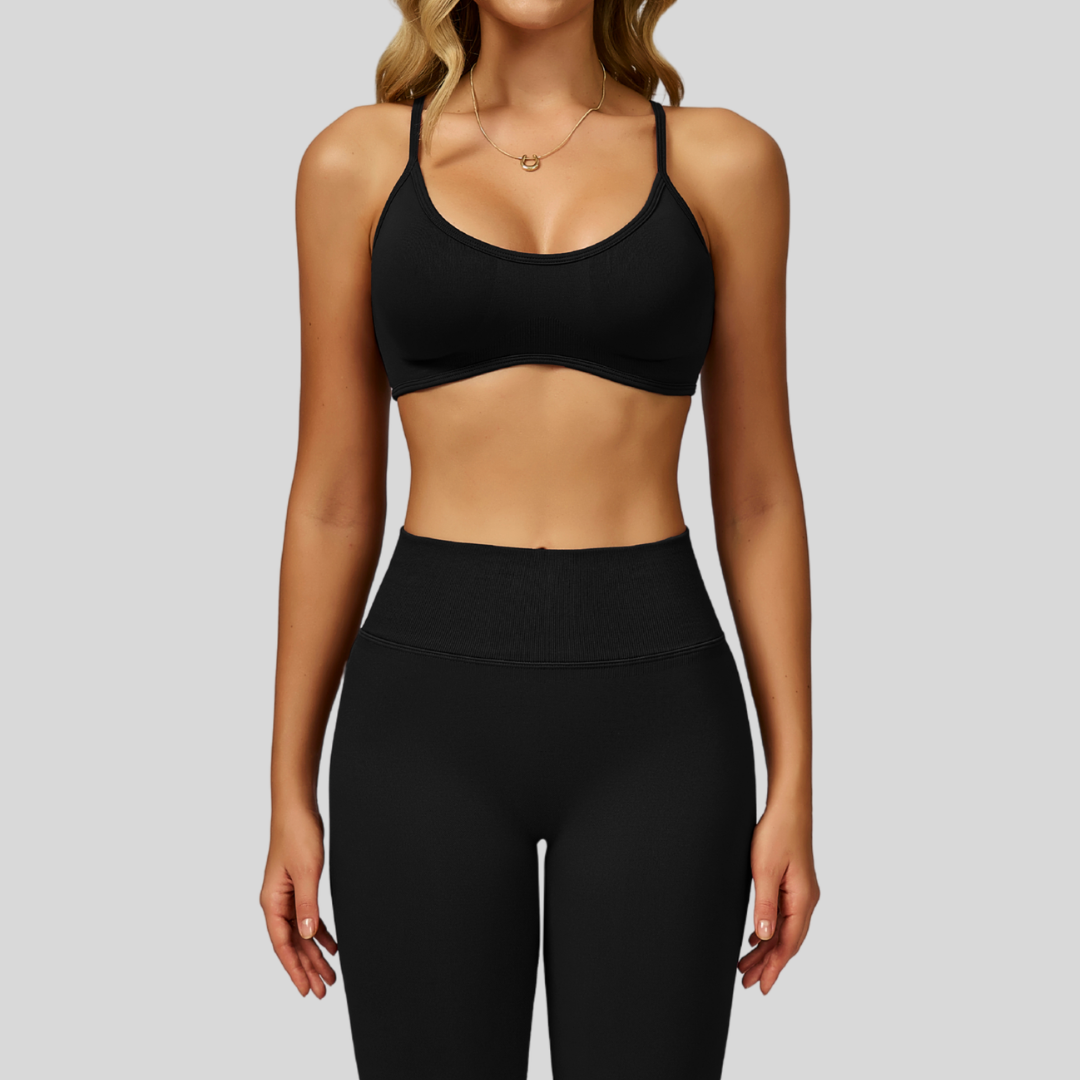 ✔ Supportive Padded Sports Bra – Clean silhouette with natural hold.