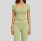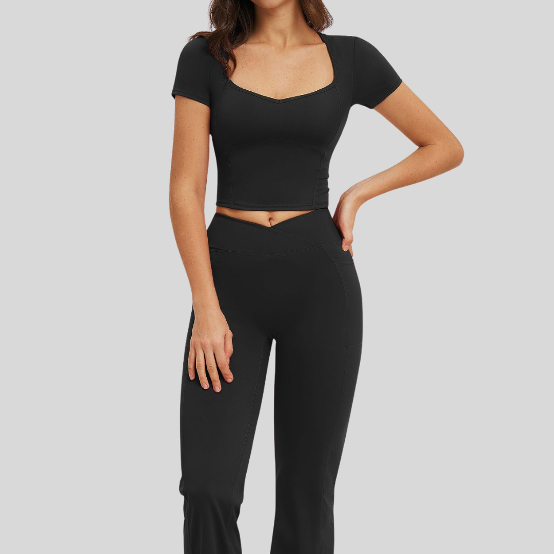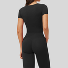 Sculpted Short Sleeve Top – Clean fitted silhouette with a softly contoured neckline.