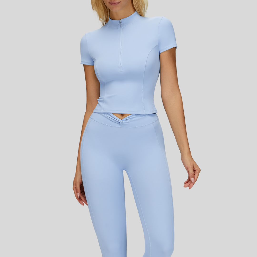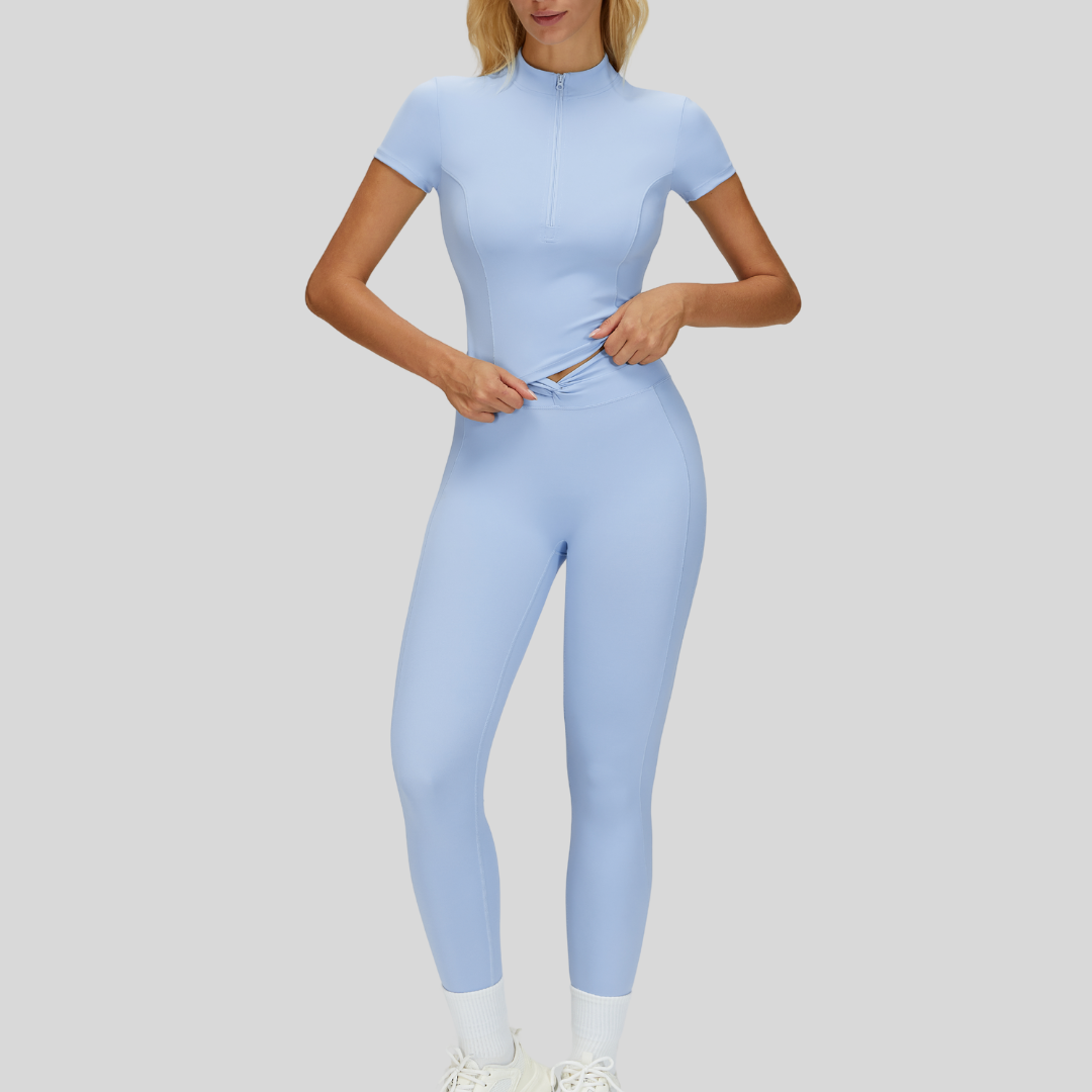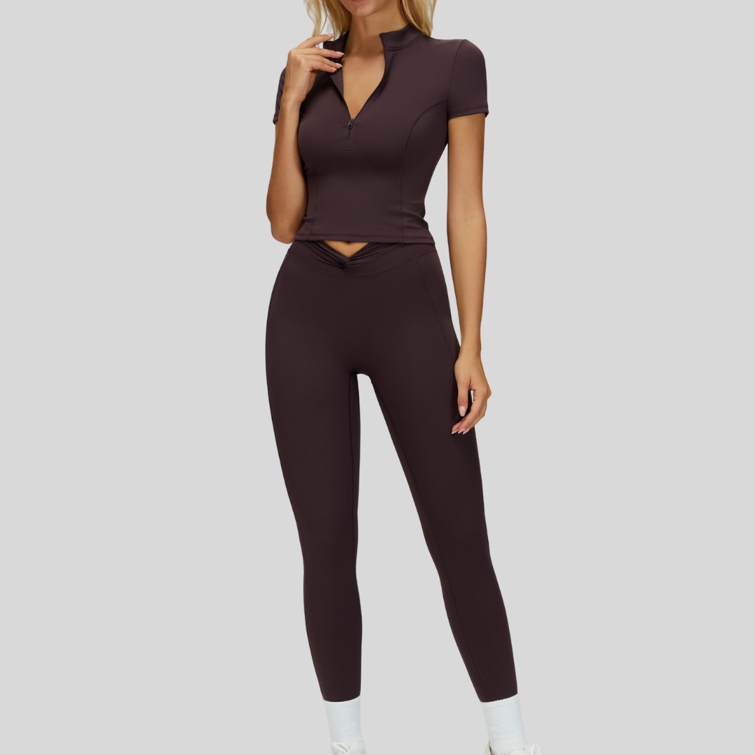 A refined two-piece set designed to shape, smooth, and elevate your everyday movement. Annalise pairs a flattering twist-front legging with a sleek quarter-zip top for a polished lifestyle look.