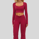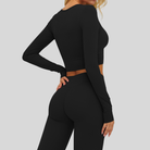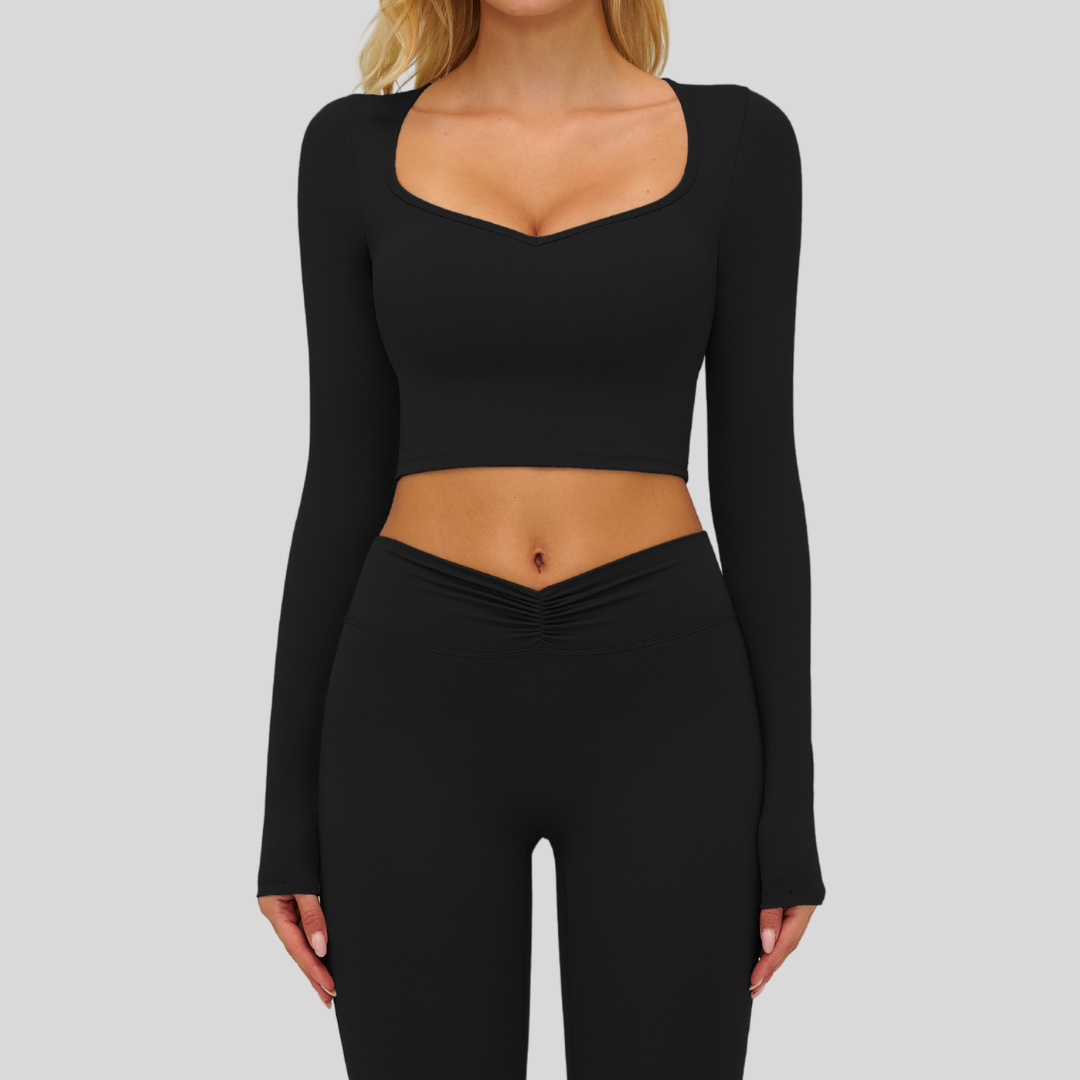 ✔ Sculpted Long Sleeve Top – Smooth coverage with a flattering cropped length.
