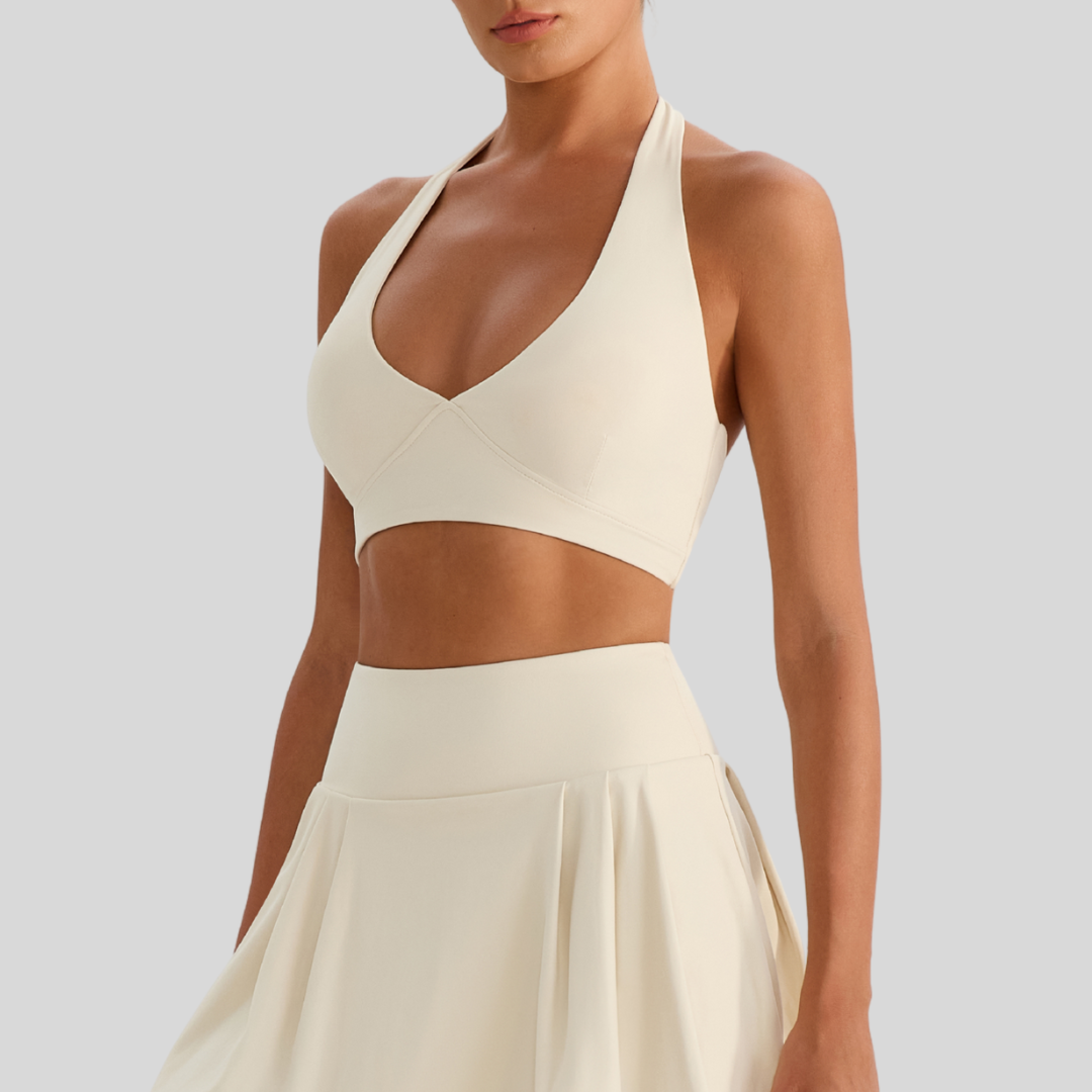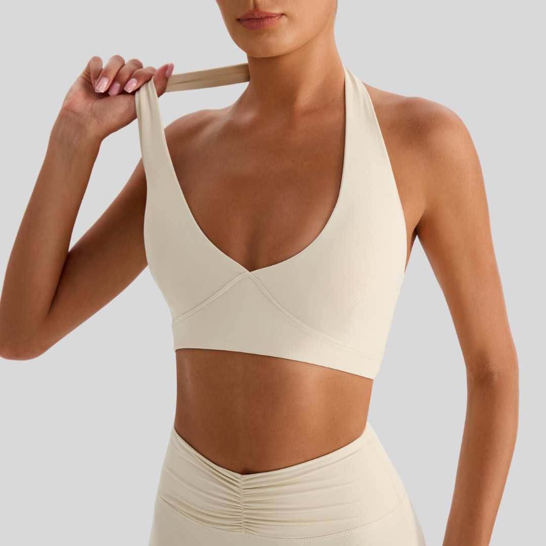 The Kesha Bra brings a chic halter neckline and sleek wrap fit for a style that stands out in and out of the gym. Made with Align Fabric (75% nylon + 25% spandex), it’s buttery soft, stretchy, and ready for your active lifestyle.