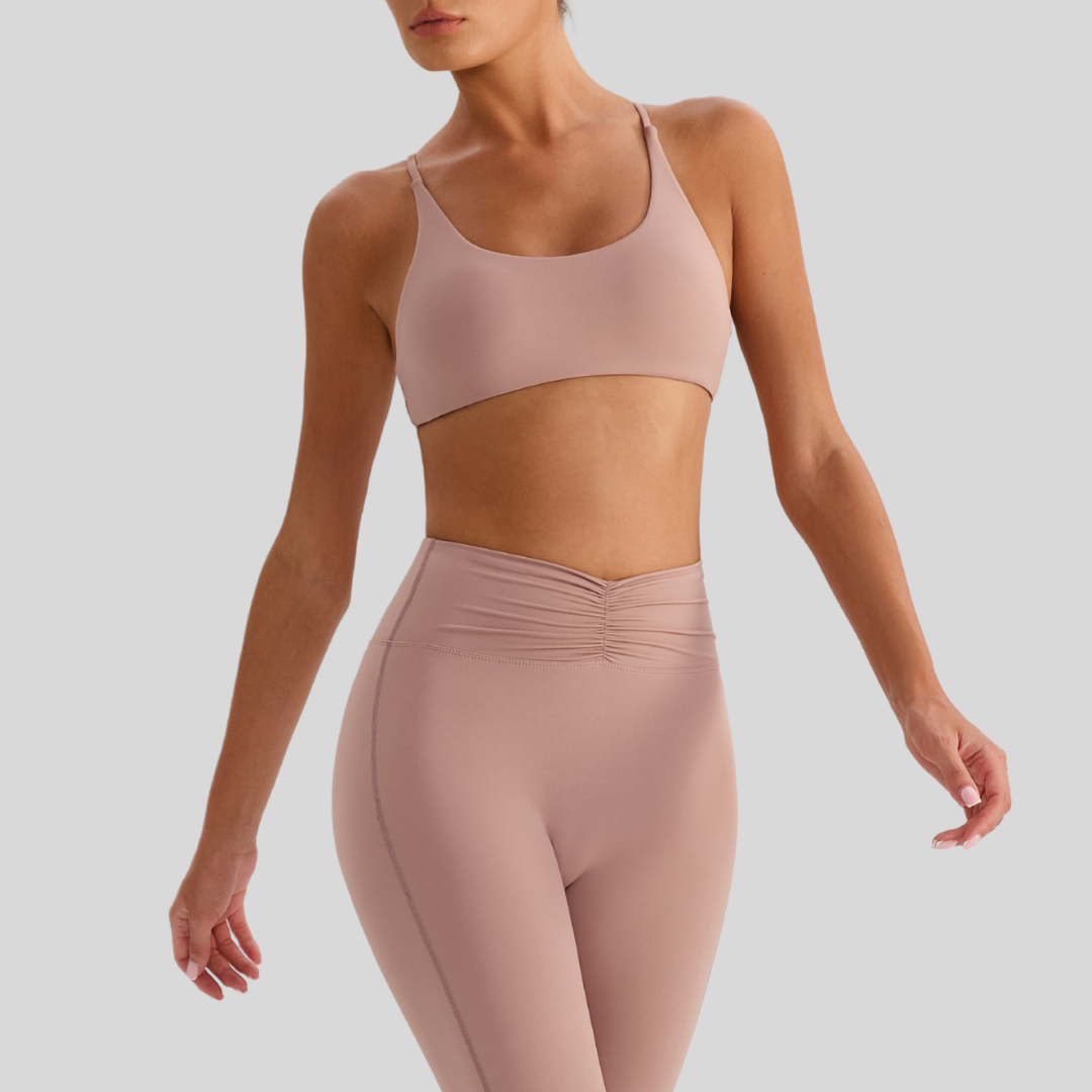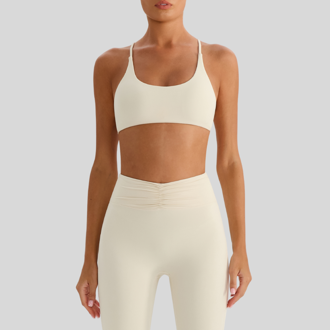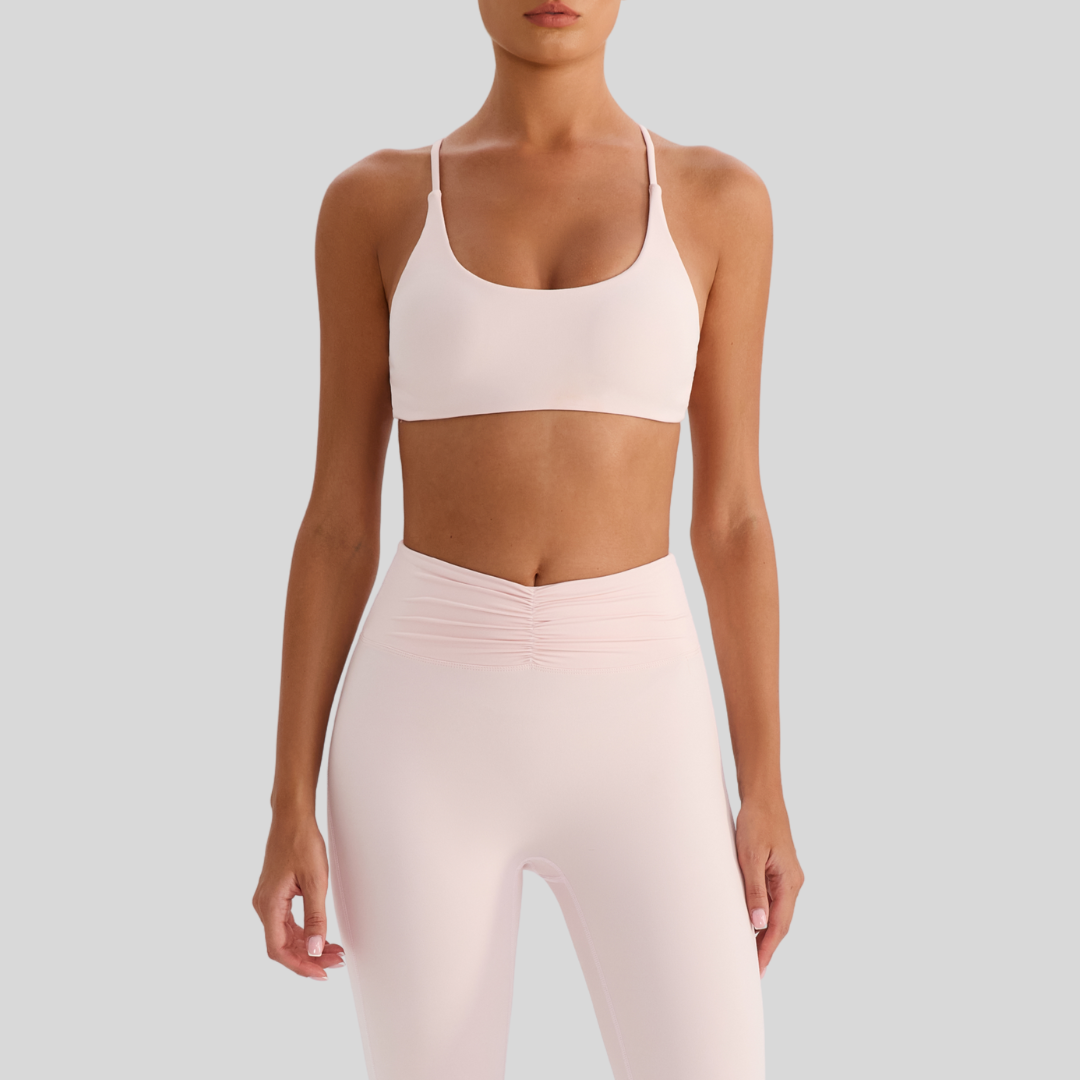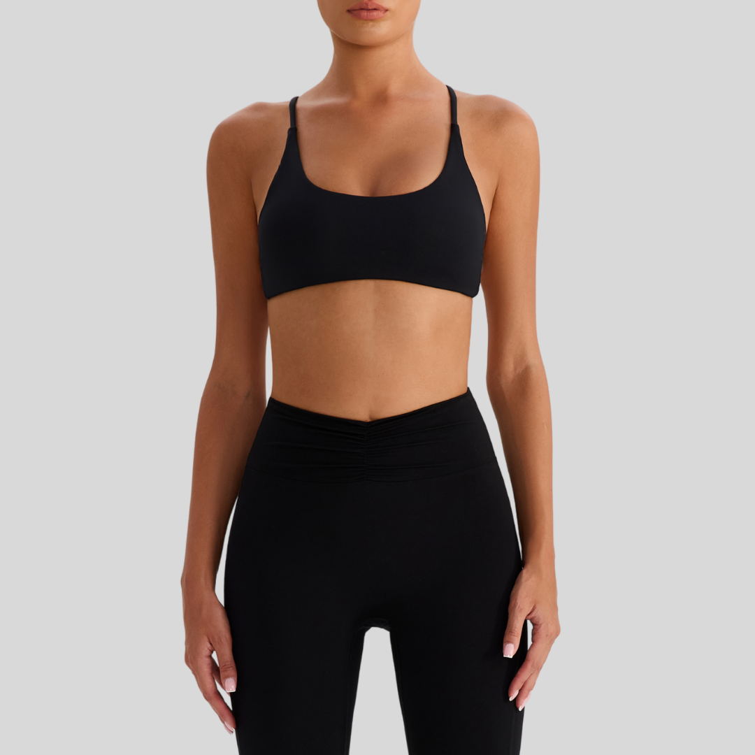 ✔ Strappy Back – Chic crisscross straps that stay put through every move.