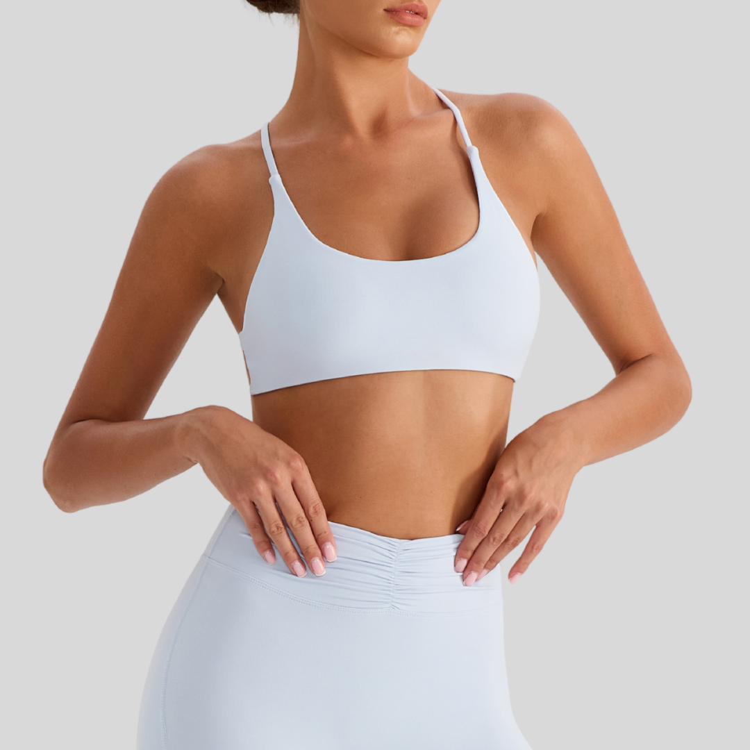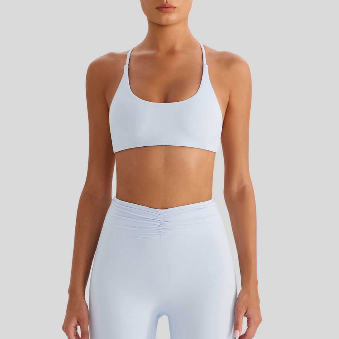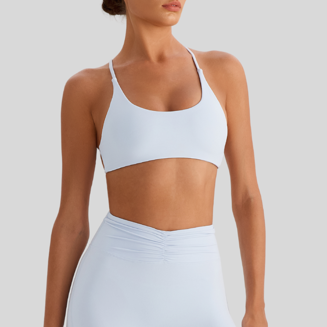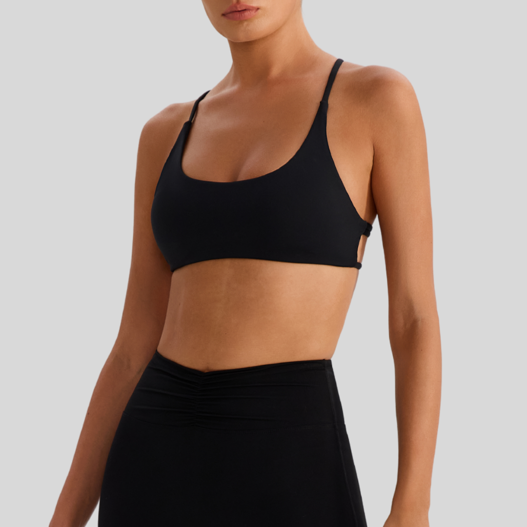 Meet Zoya, your new go-to sports bra for every kind of day. With its sleek front and strappy open-back design, it’s built to keep you comfy whether you’re at the gym, on a coffee run, or just lounging.