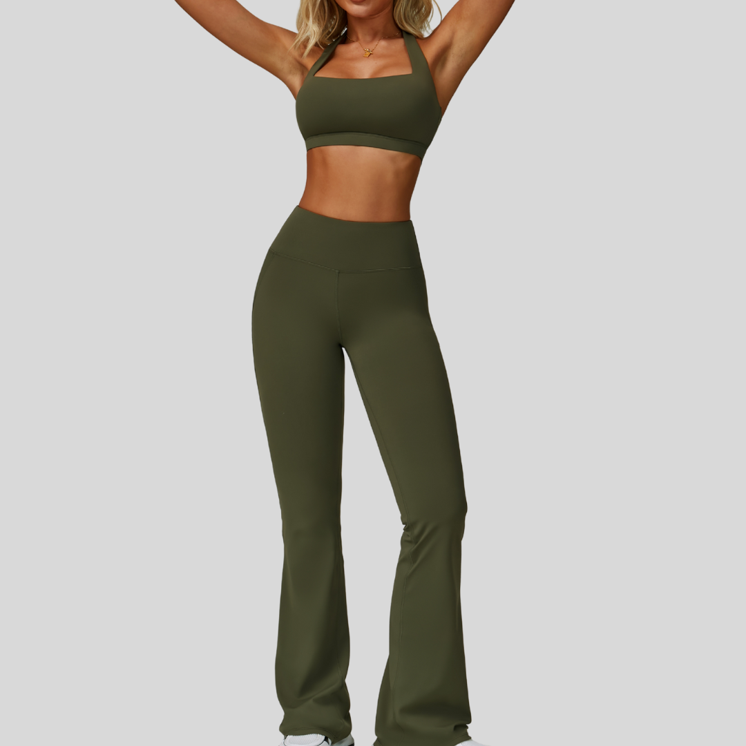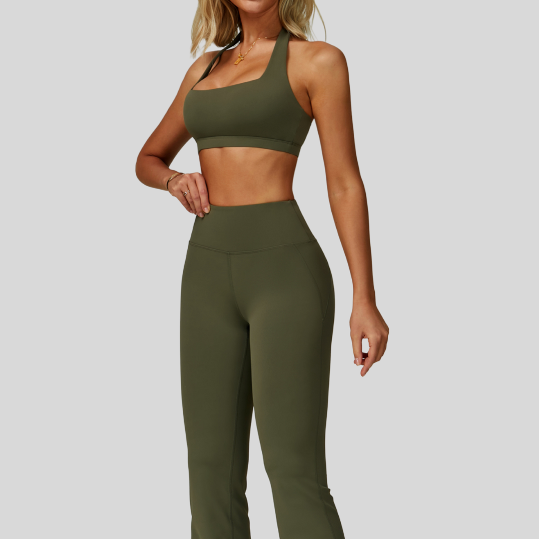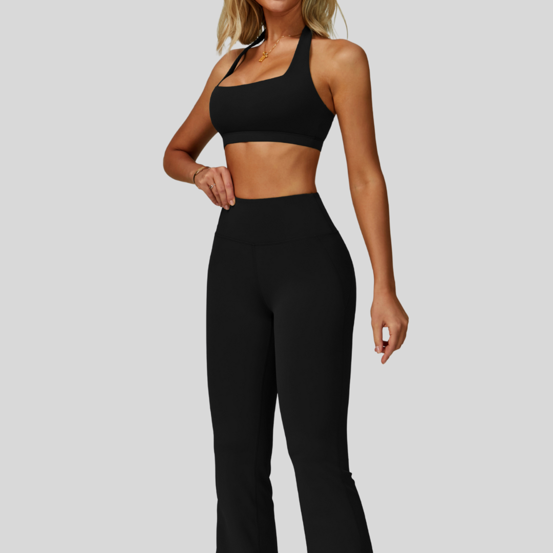 This set is your go-to for a fresh, modern active look. The open-back halter style and flattering high-waist leggings make Ilana a must-have for effortless styling.