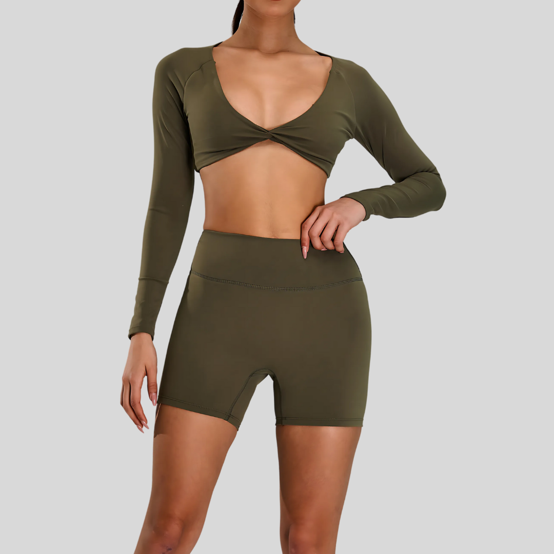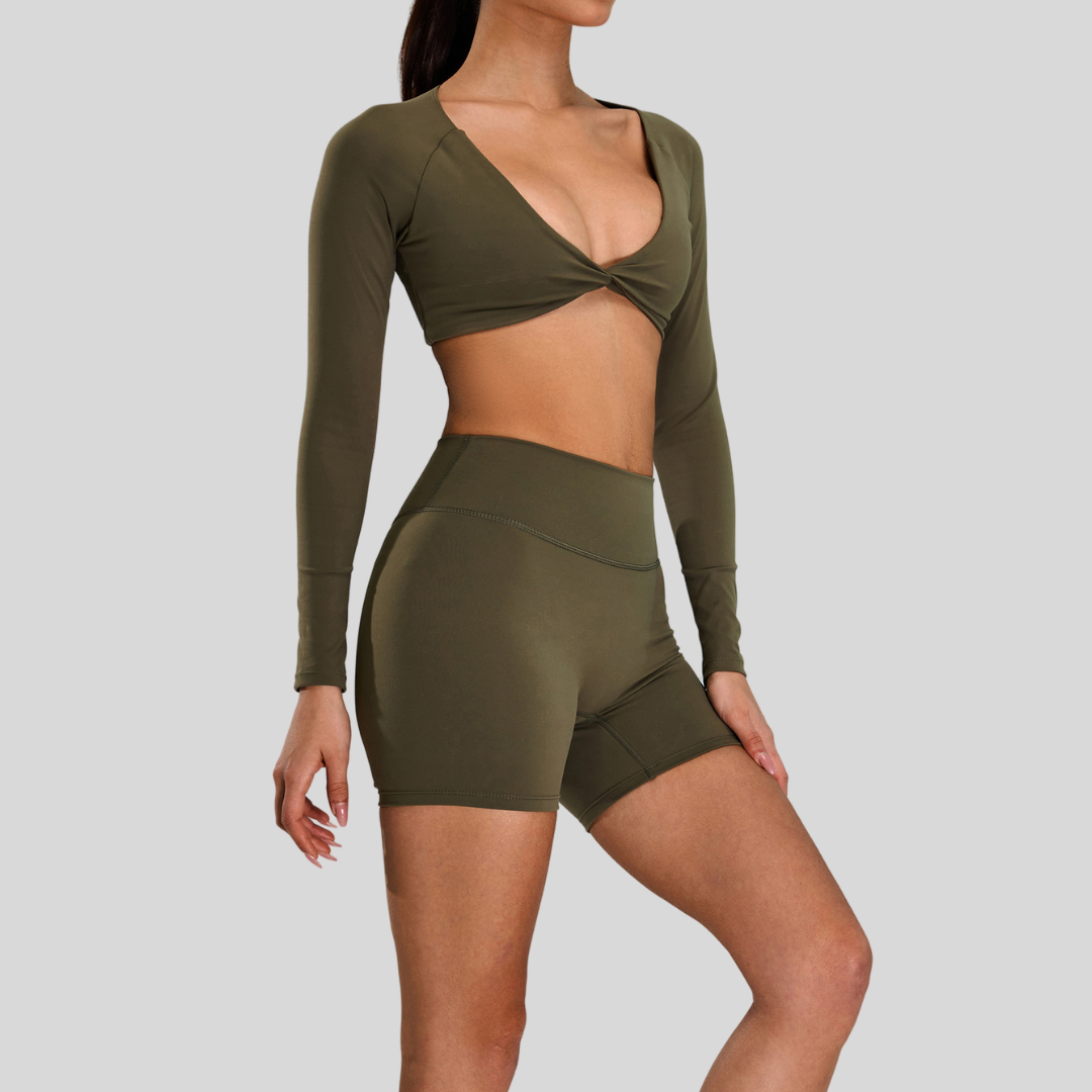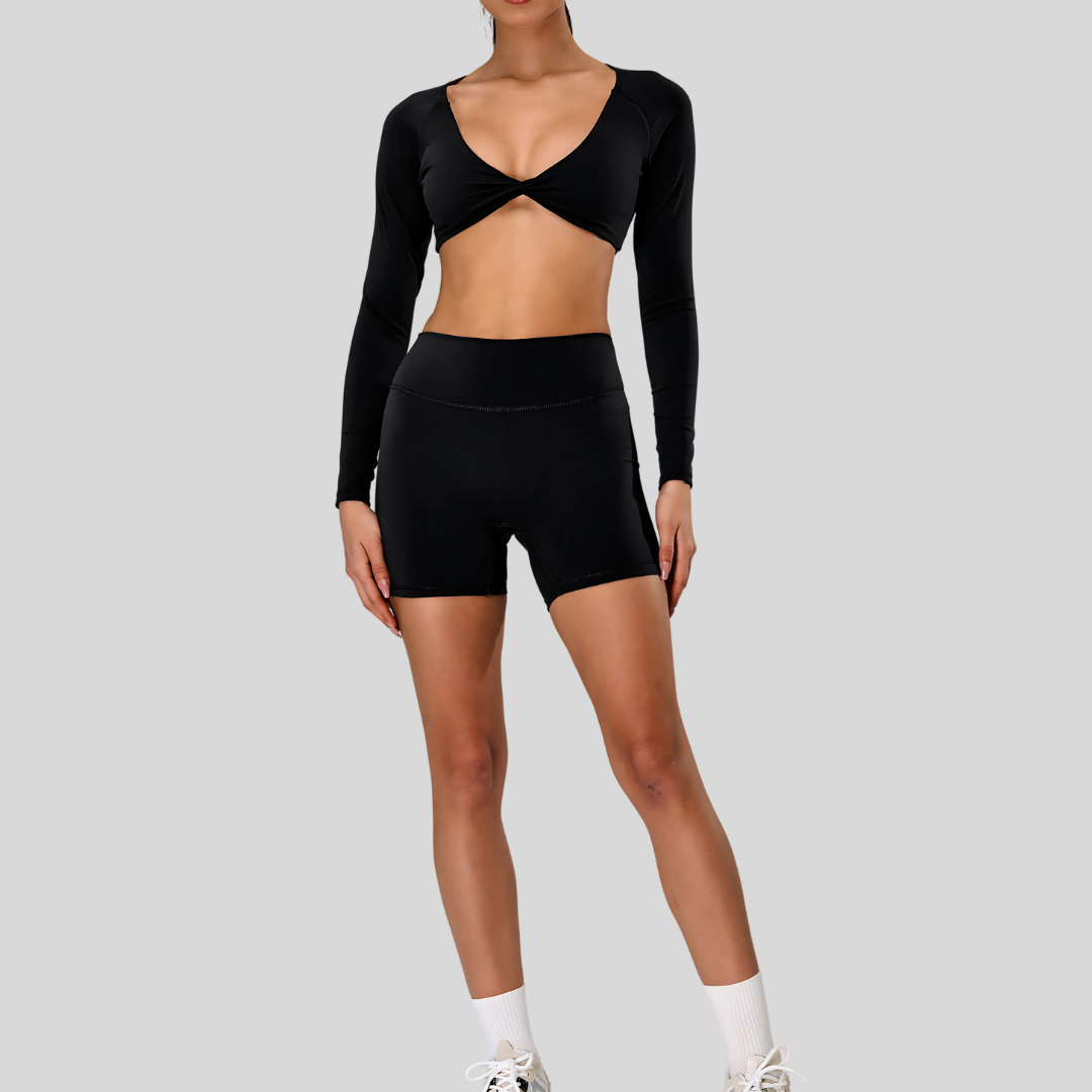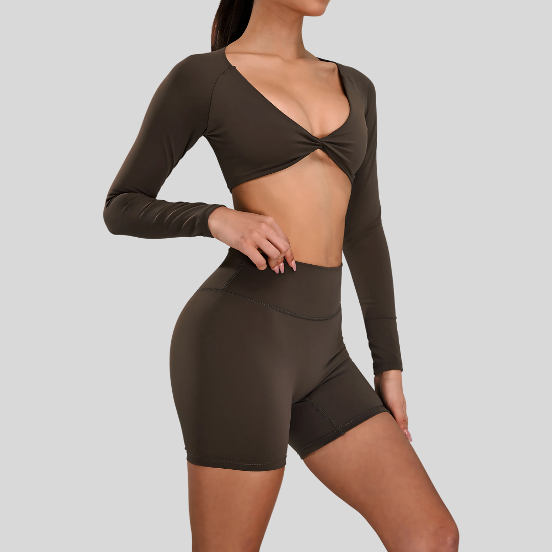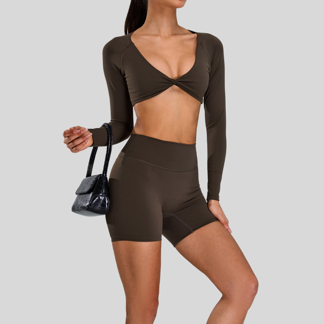 Bold yet effortless, Millie is designed for those who love statement activewear. The twist-front top adds a stylish edge, while the sculpting biker shorts hug your curves in all the right ways.