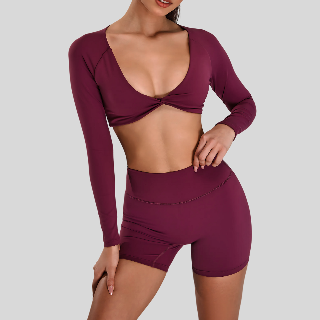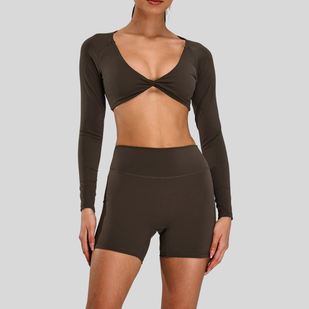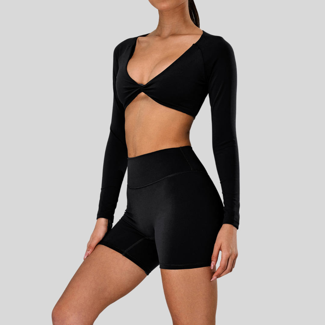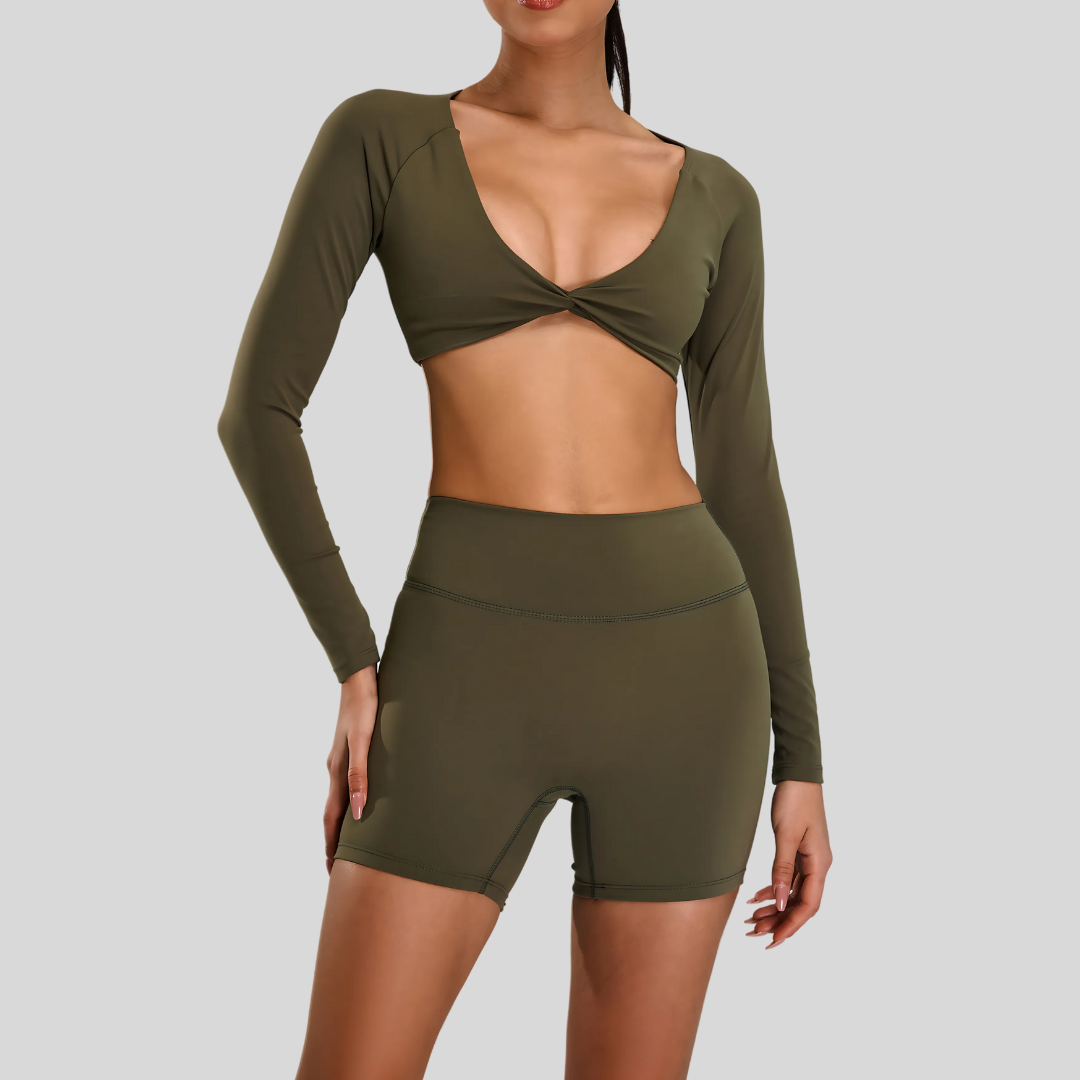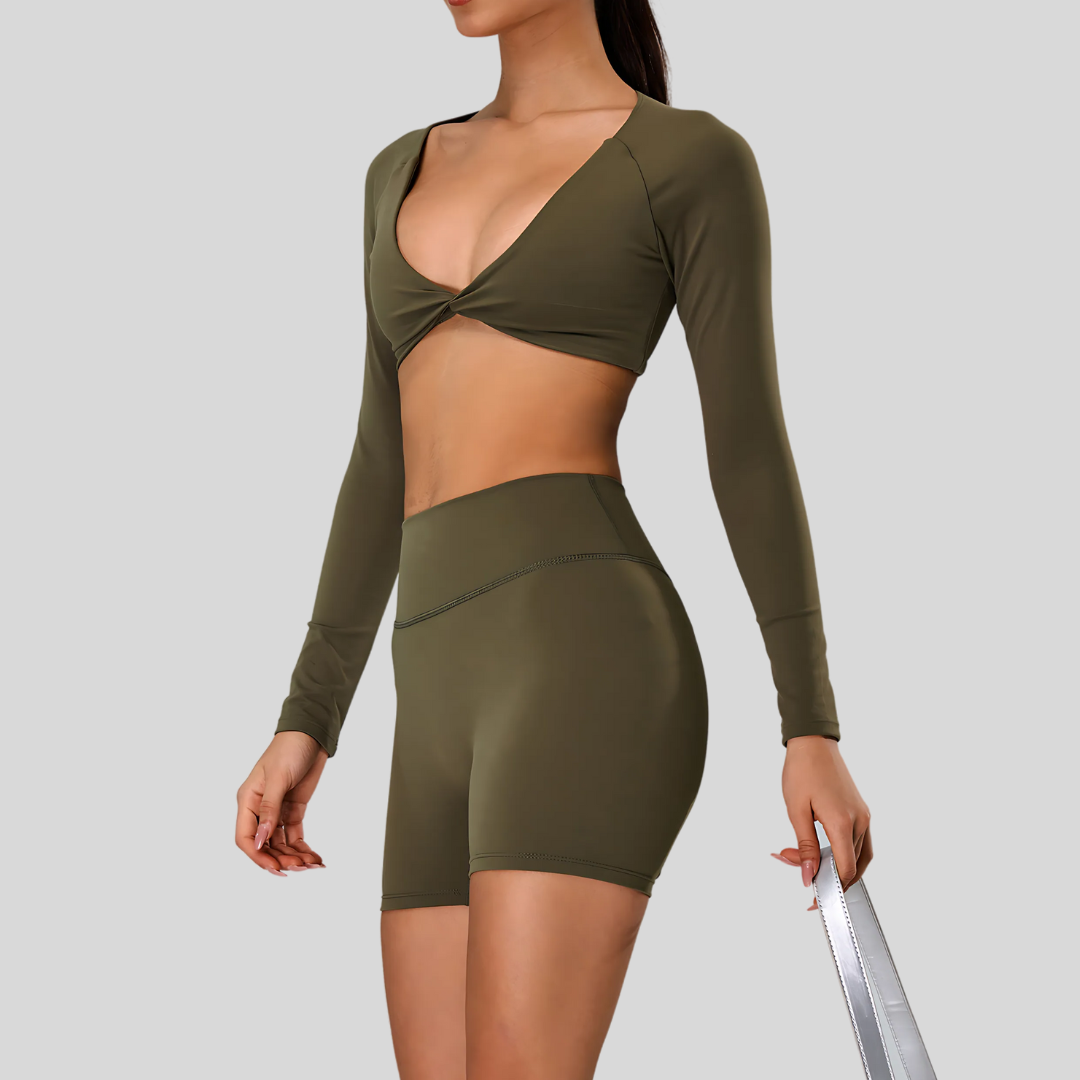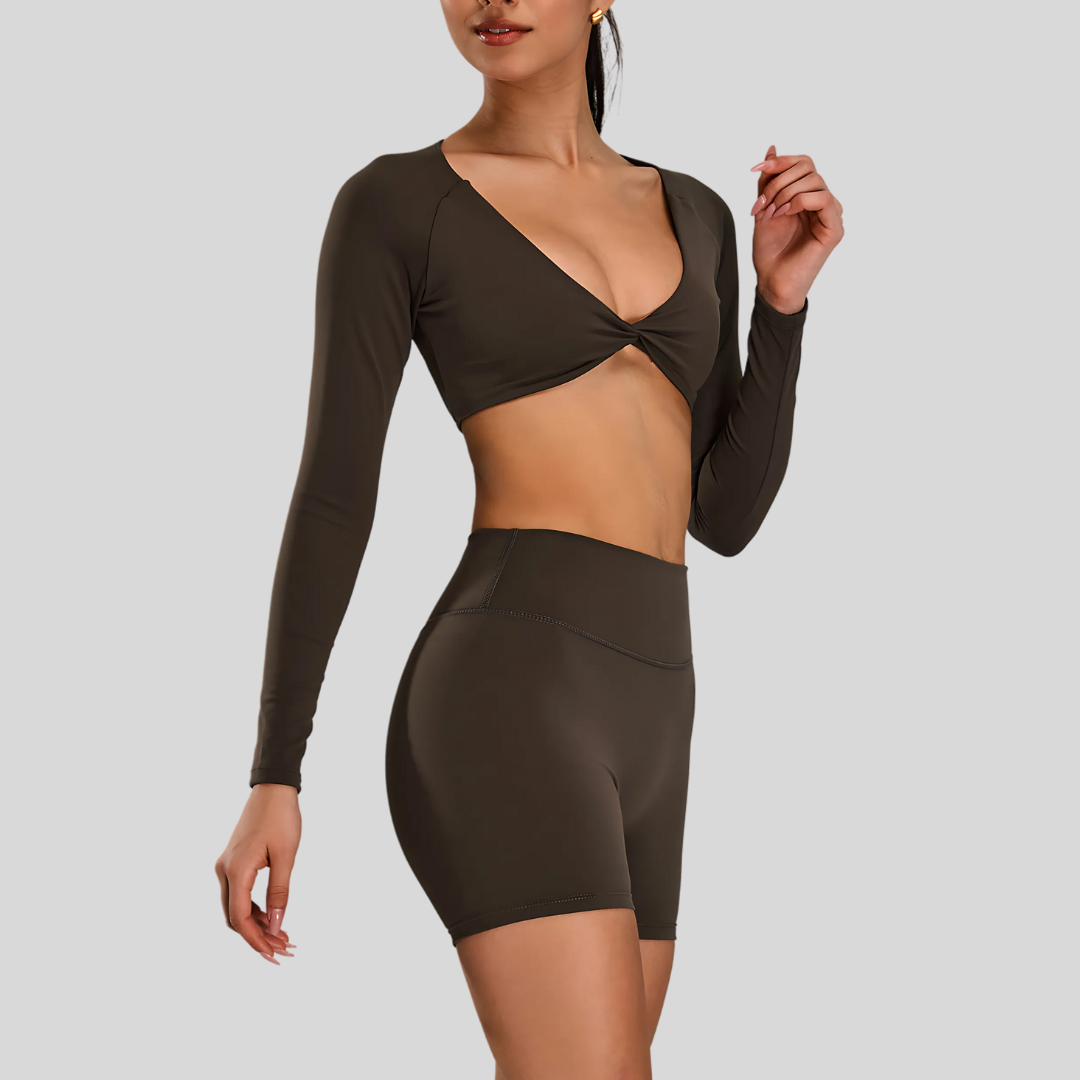 Bold yet effortless, Millie is designed for those who love statement activewear. The twist-front top adds a stylish edge, while the sculpting biker shorts hug your curves in all the right ways.