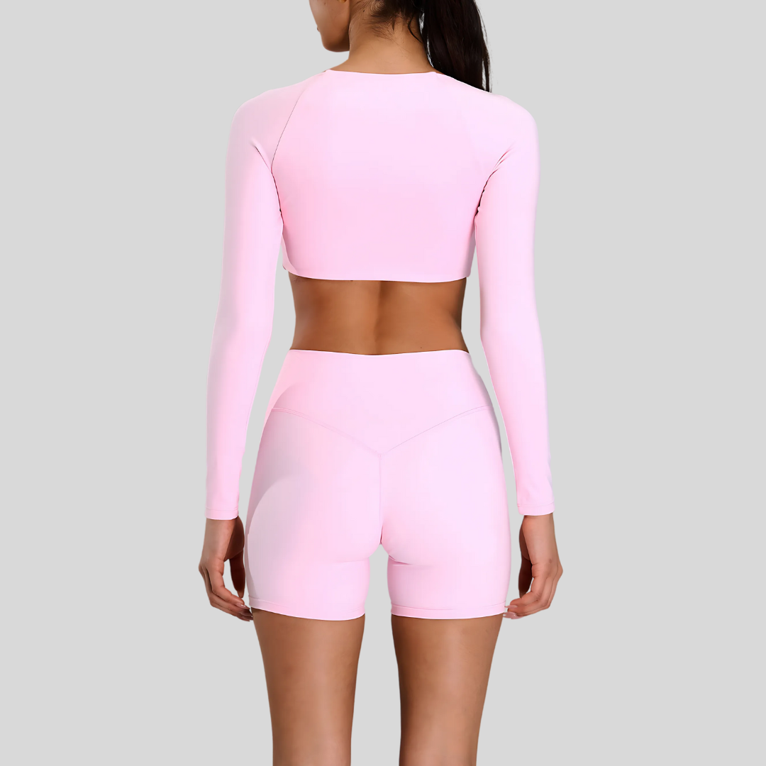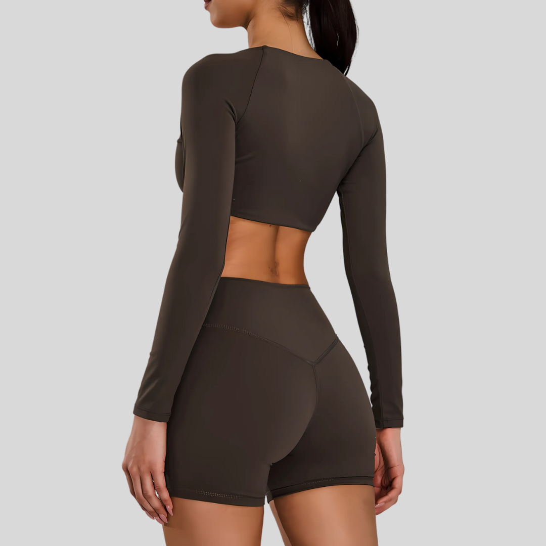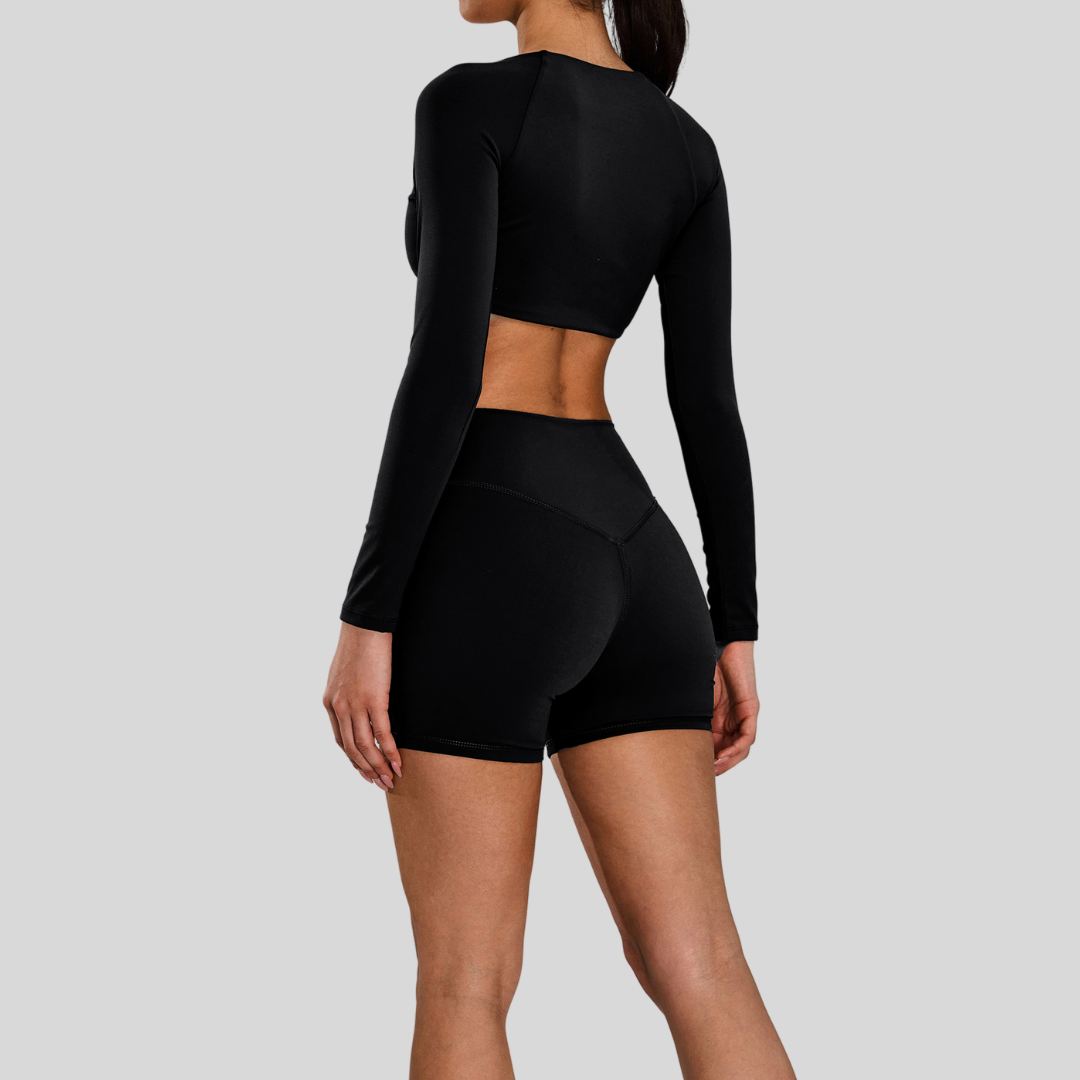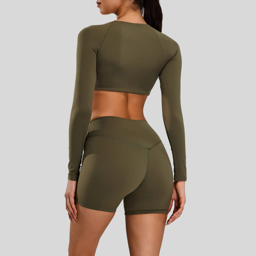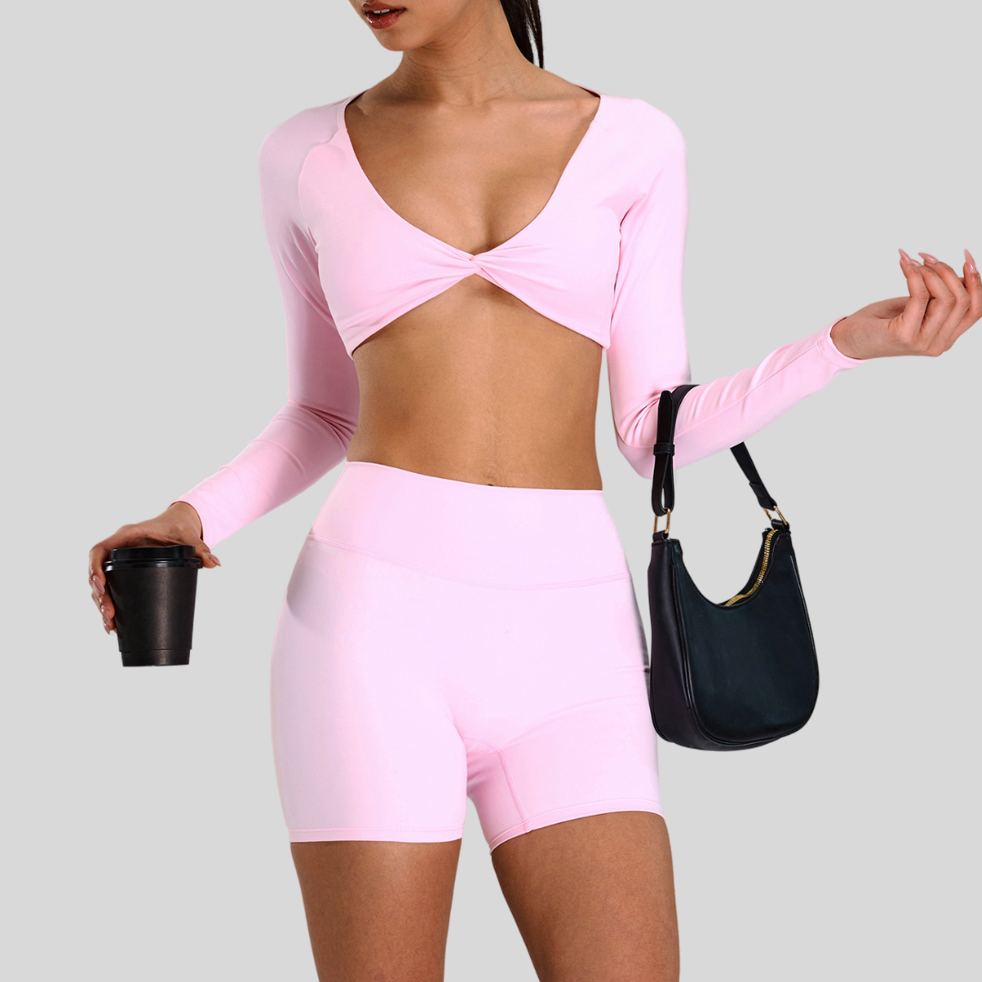 Bold yet effortless, Millie is designed for those who love statement activewear. The twist-front top adds a stylish edge, while the sculpting biker shorts hug your curves in all the right ways.