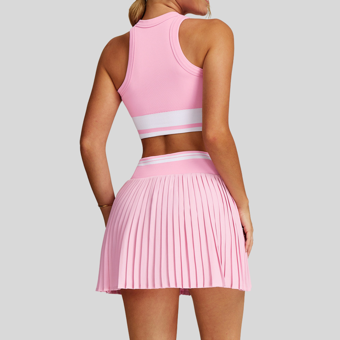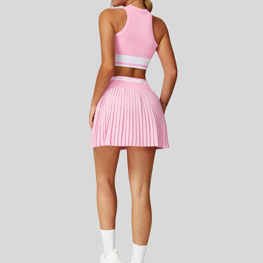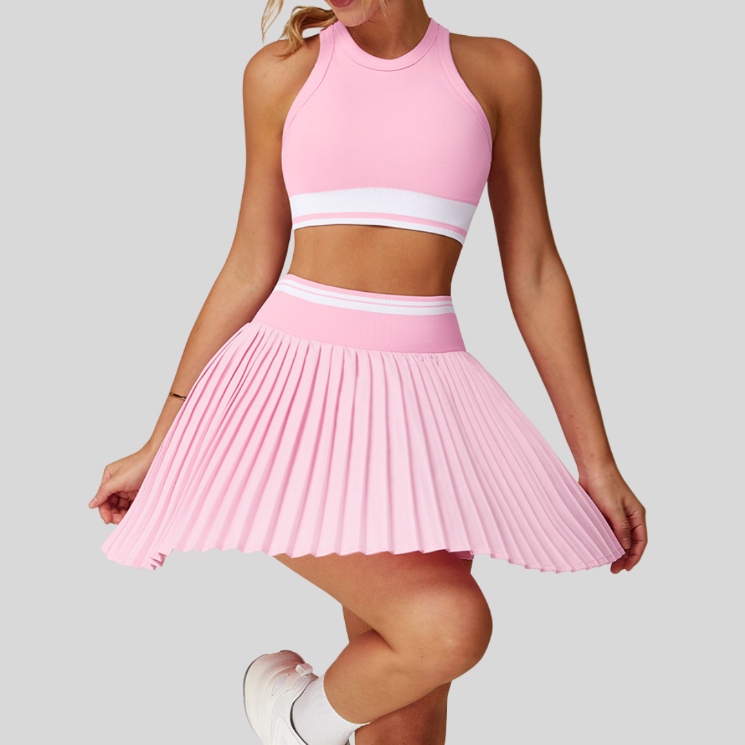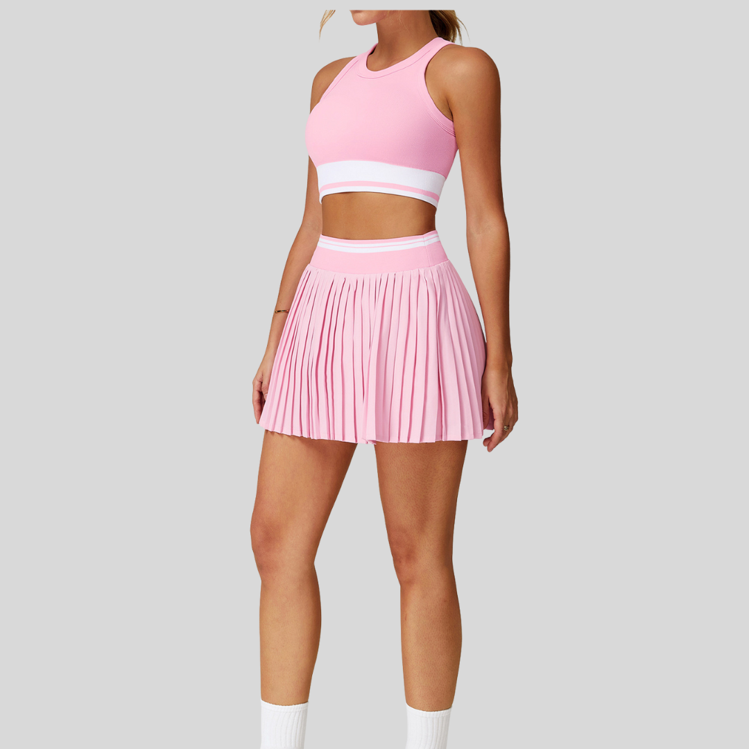 Nice is your go-to for those cute but comfy days. The skirt’s secret? Built-in shorts that let you move like you mean it. The ribbed crop top? Double-layered for that snug, stay-put feel.